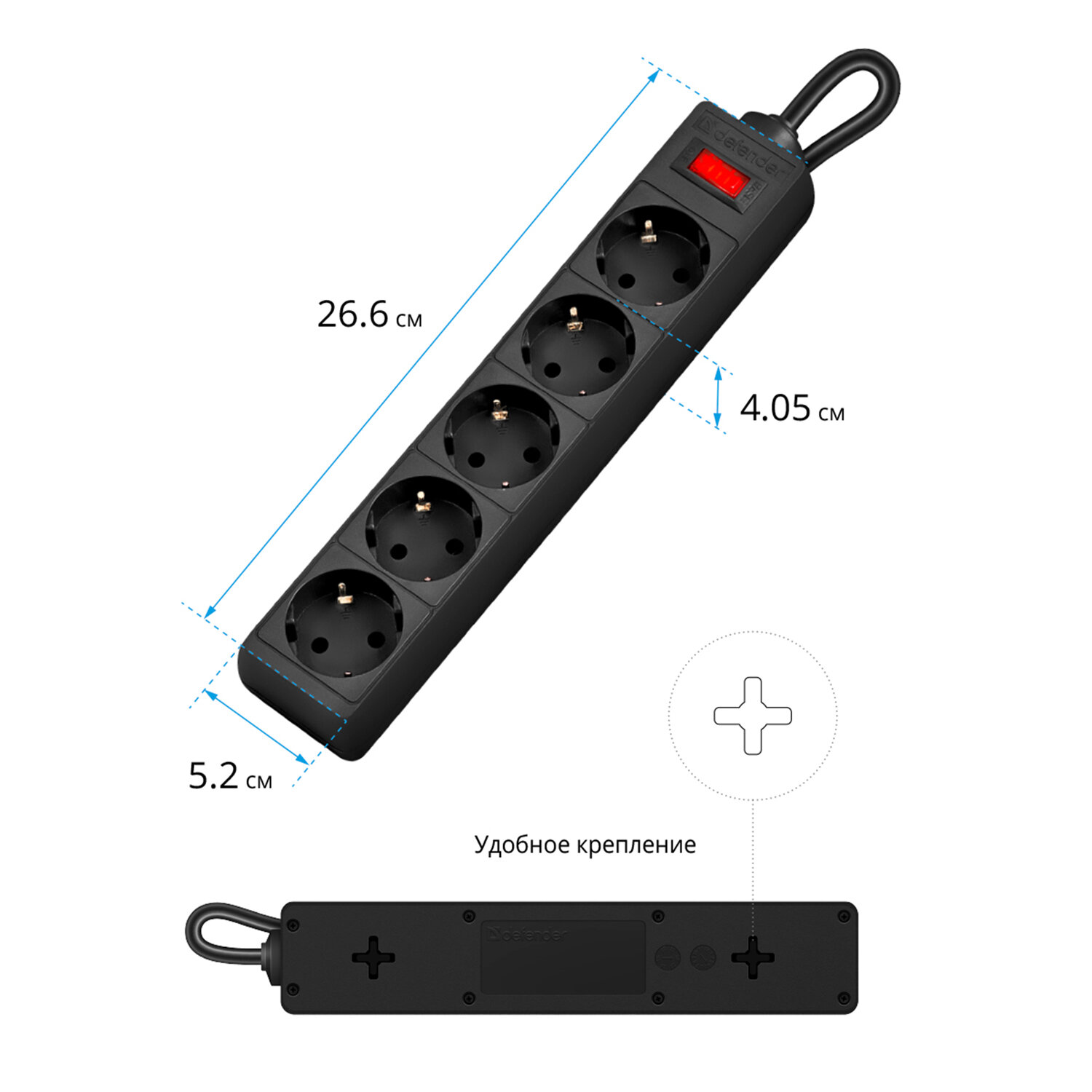 О товаре «Сетевой фильтр DEFENDER ES, 5 розеток, 5 м, черный, 99486»