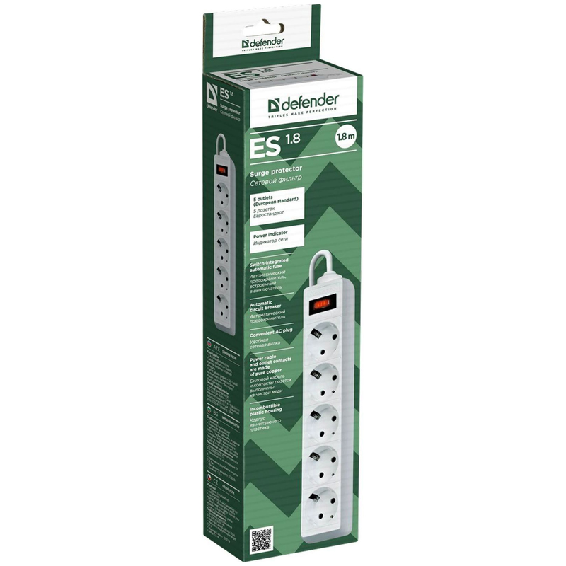 Сетевой фильтр Defender ES 1.8 на 5 розеток 1.8 метра белый (99481)