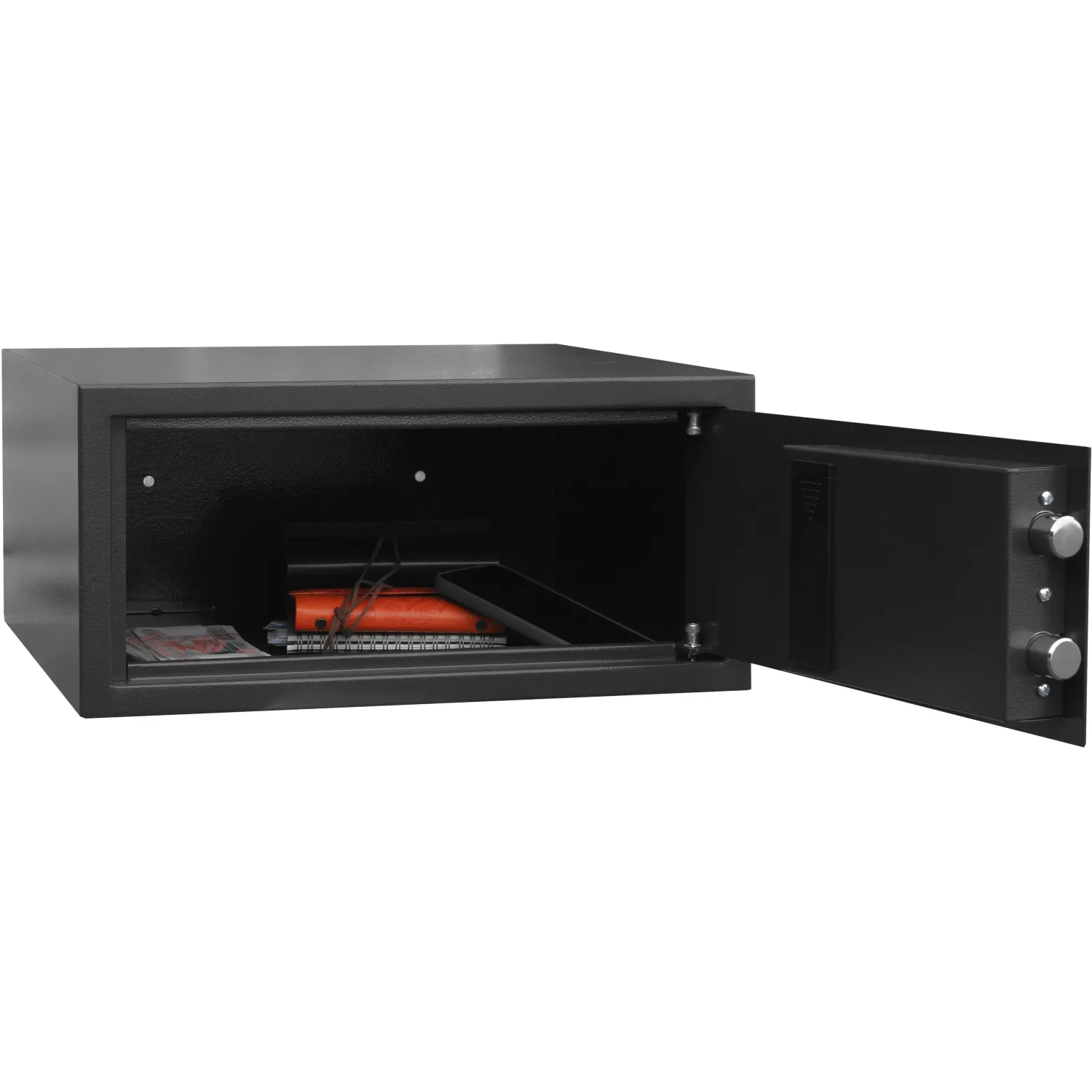 Дополнительные элементы (папки, кэшбоксы) в комплект сейфа не входят и заказываются отдельно.