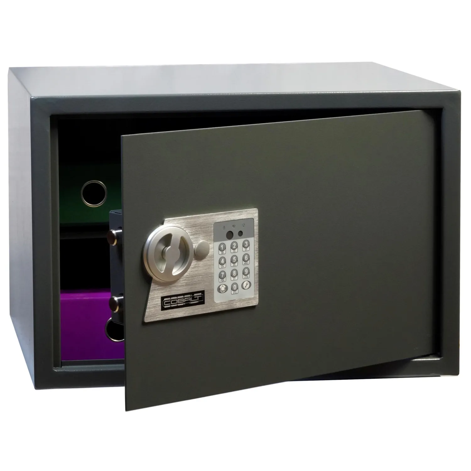 Мебельные сейфы Cobalt в новом неповторимом оригинальном дизайне. Электронный кодовый замок. Возможность установки двух кодов пользователя или мастер кода. Функция тихого режима (возможность отключить звуковое сопровождение клавиш при наборе кода). Функция аварийного питания если вы забыли вовремя поменять элементы питания. Дополнительный ключ аварийного открывания. Возможность крепления к полу и стене.