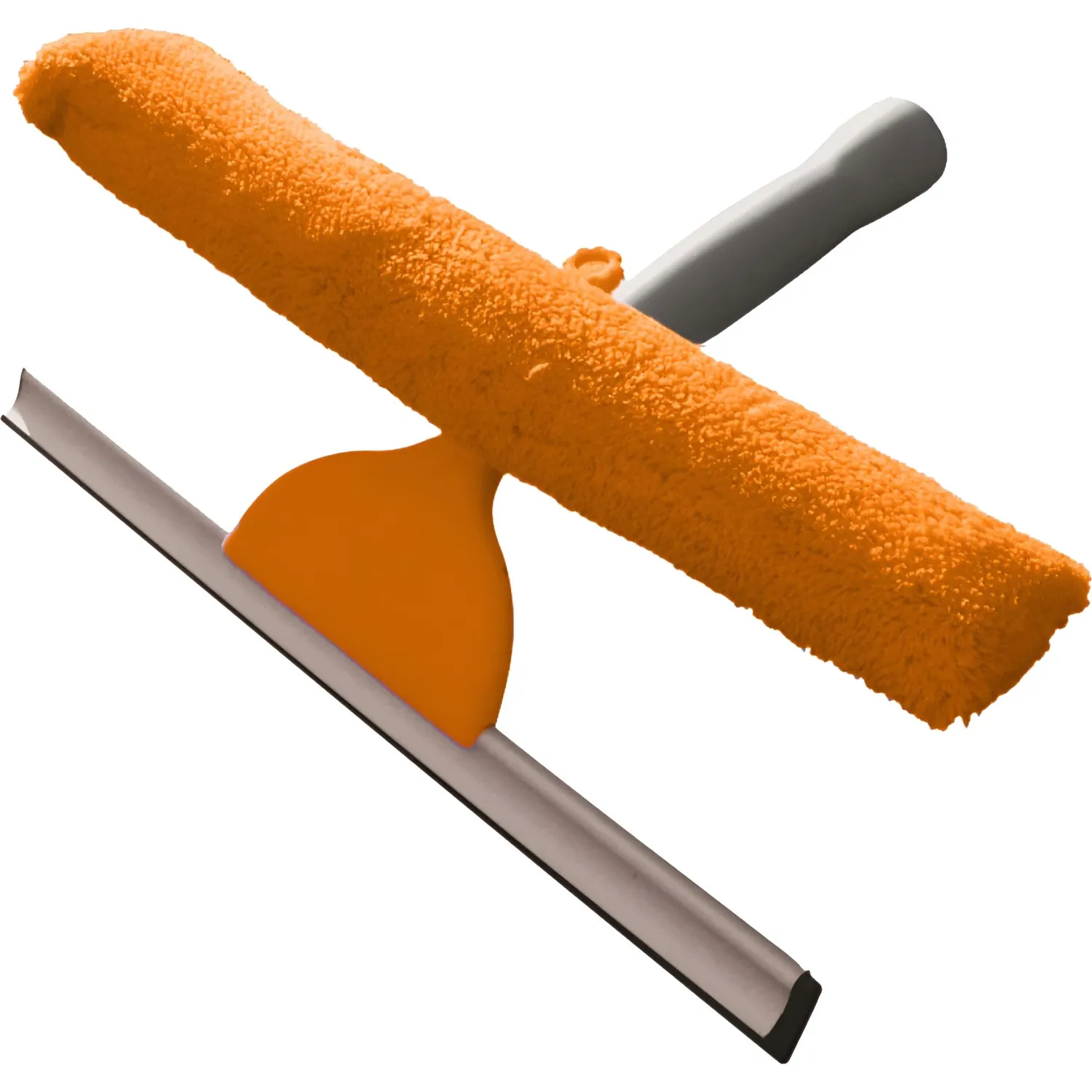 Практичный двусторонний скребок для профессионального ухода за окнами. В конструкции совмещён водосгон и микрофибровая насадка, что позволяет одновременно удалять влагу и полировать поверхность.
