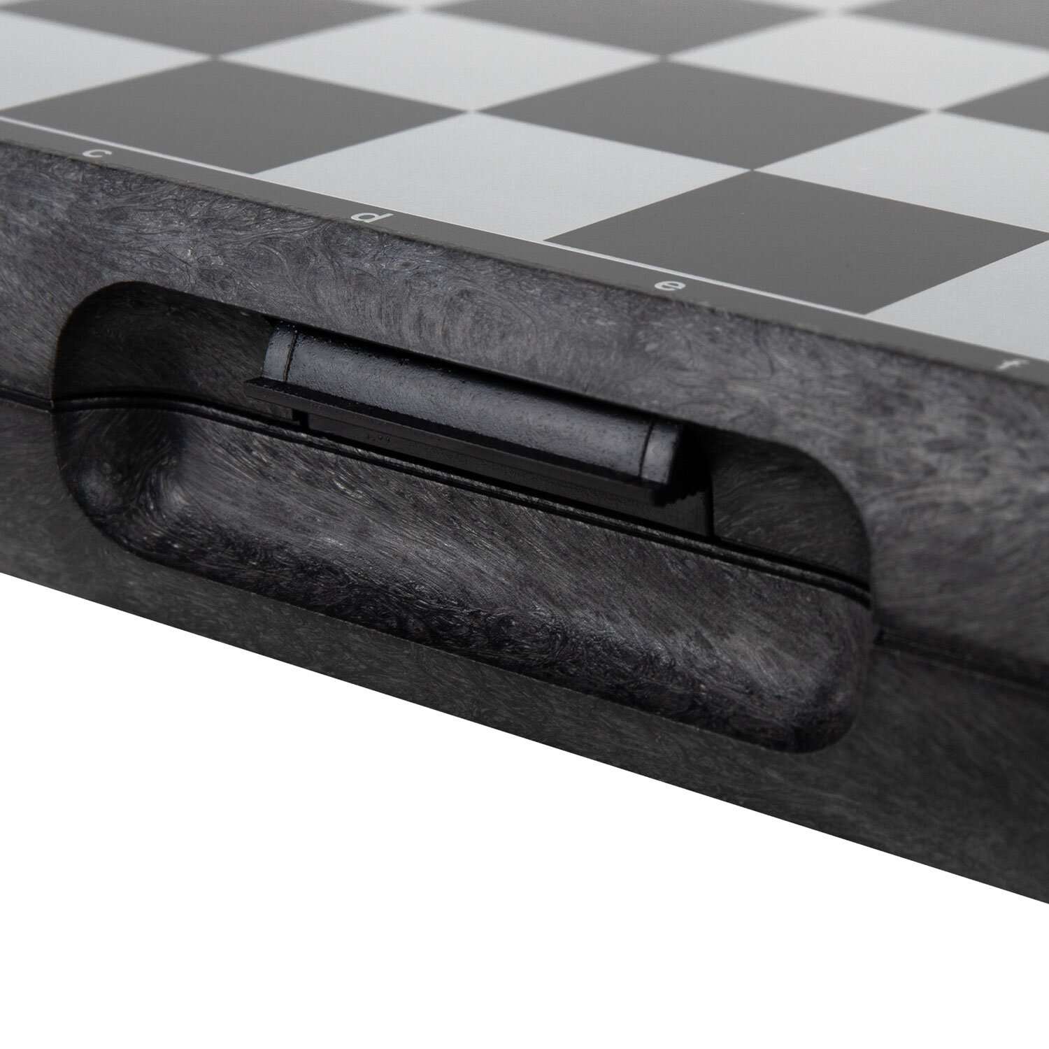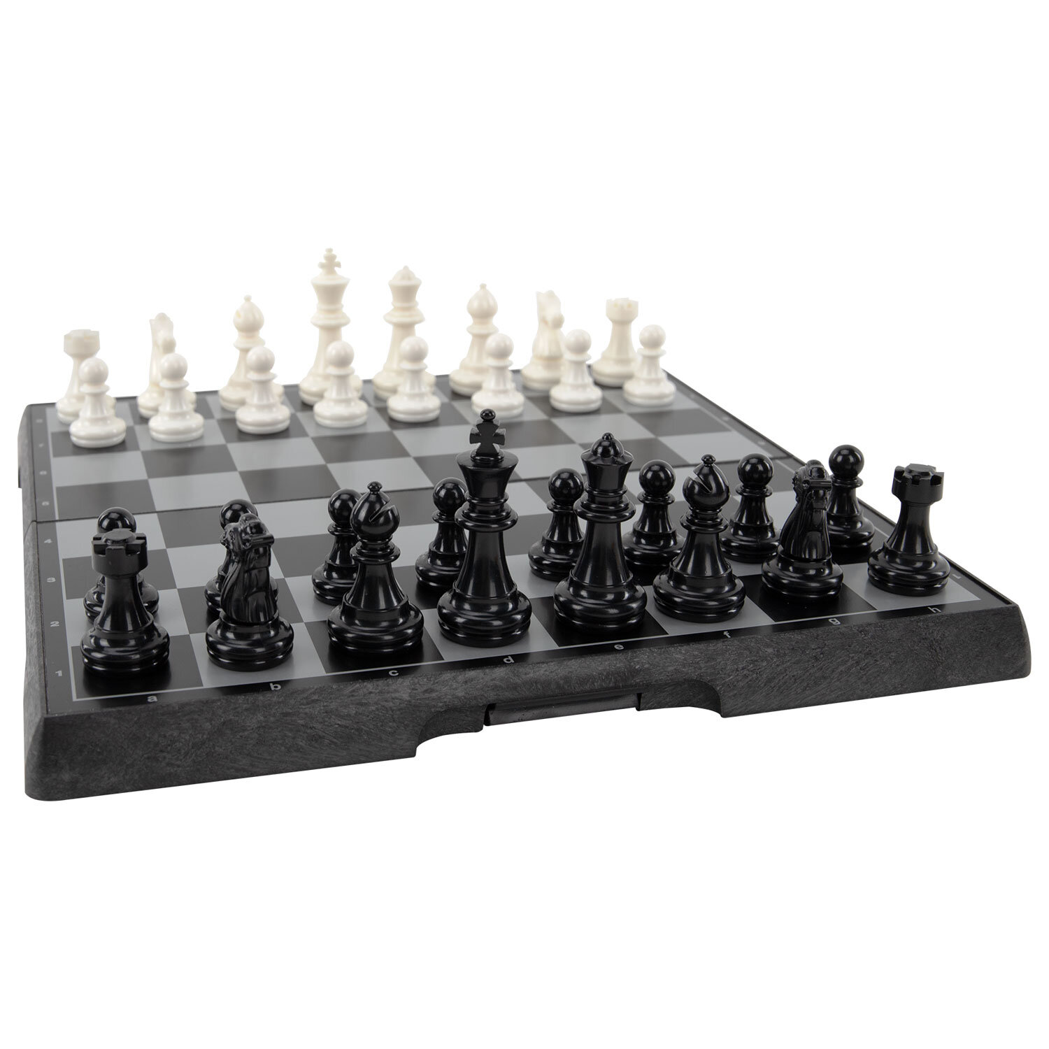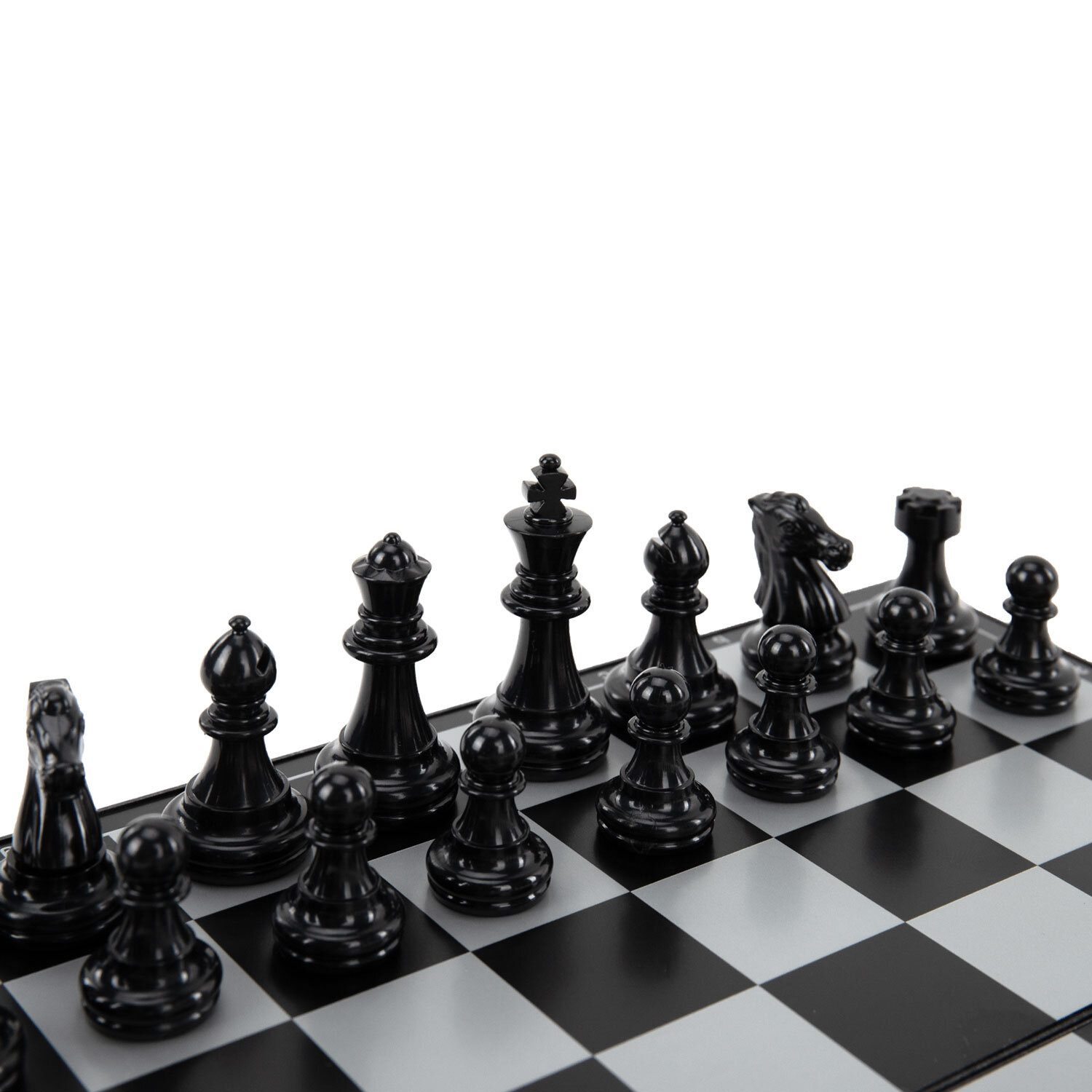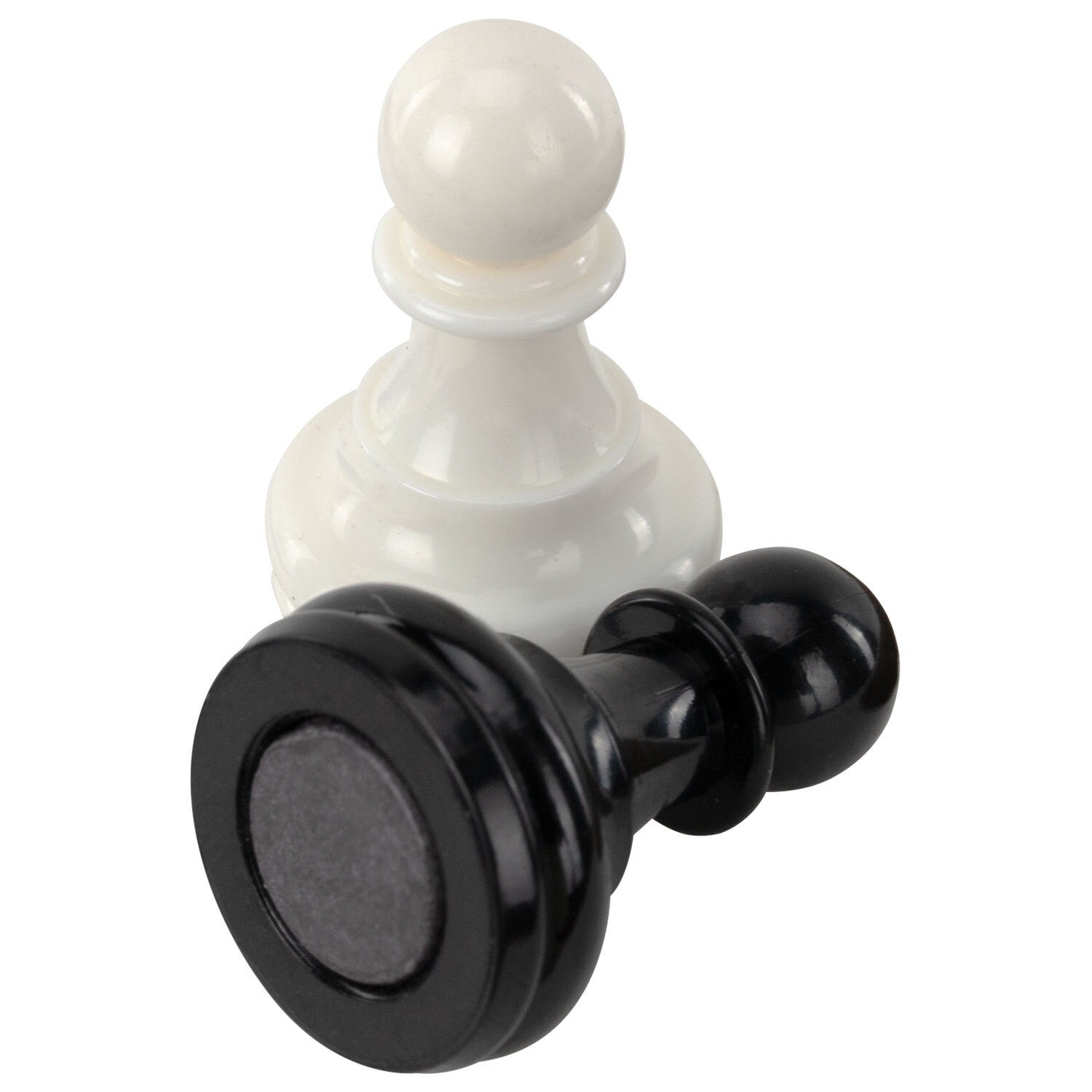 Шахматы магнитные имеют удобный размер – доска 25х25см достаточно компактна и легко поместится в сумку или рюкзак. Фигуры изготовлены из прочного пластика с магнитными основаниями, что делает их лёгкими, долговечными и устойчивыми на поле. Доска выполнена из качественного пластика и имеет складную конструкцию, внутри которой предусмотрено место для хранения фигур. Защёлка предотвращает случайное открытие доски.