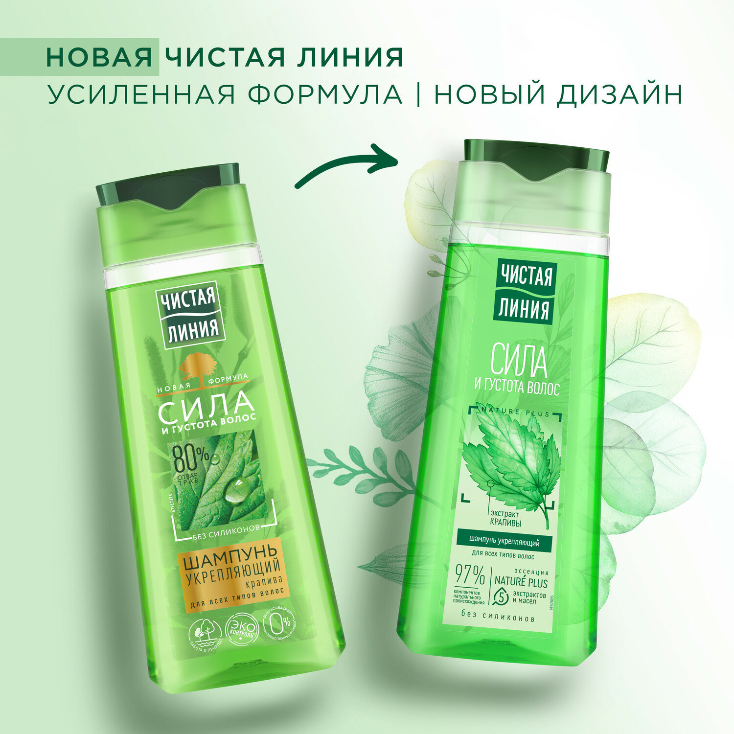 Шампунь для всех типов волос ЧИСТАЯ ЛИНИЯ "Экстракт крапивы" с усиленной формулой и в обновленном дизайне!