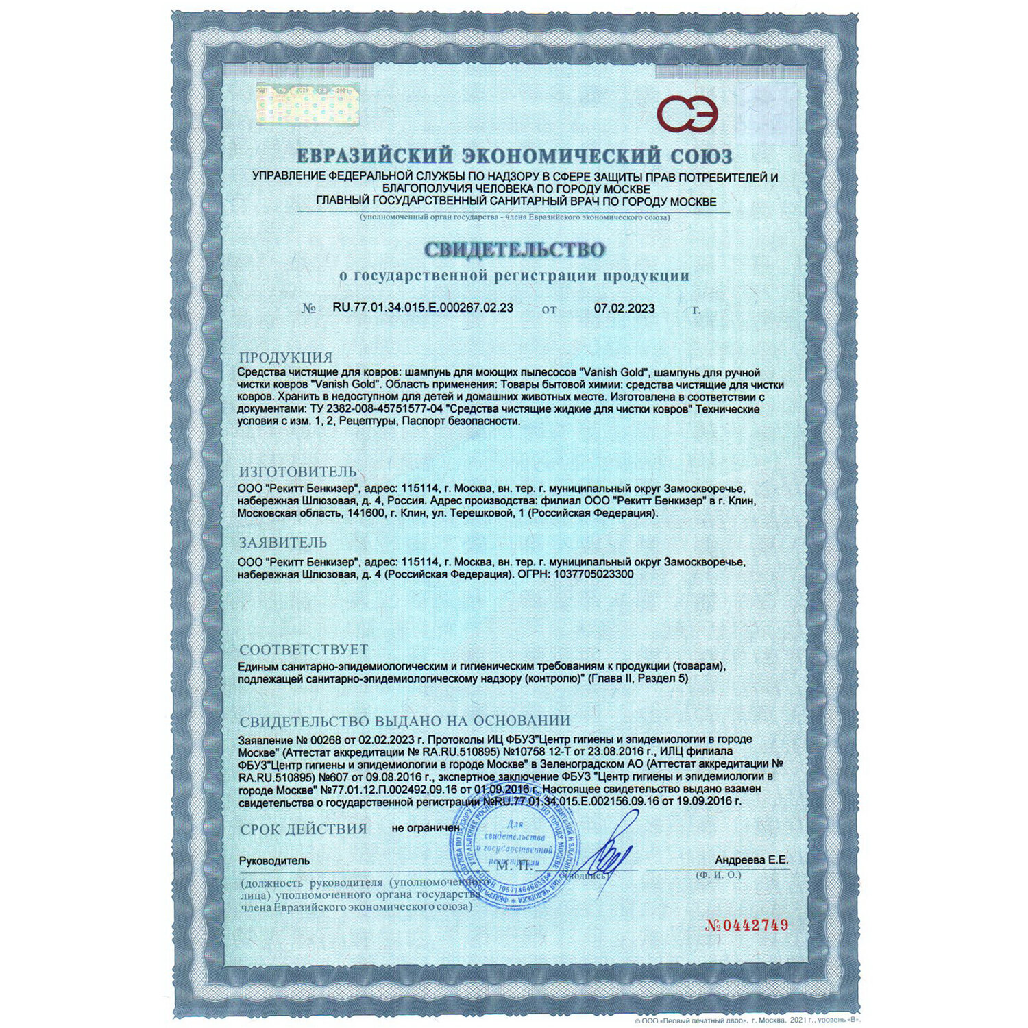 О товаре «Средство для чистки ковровых покрытий Vanish Gold 450 мл (для моющих пылесосов)»