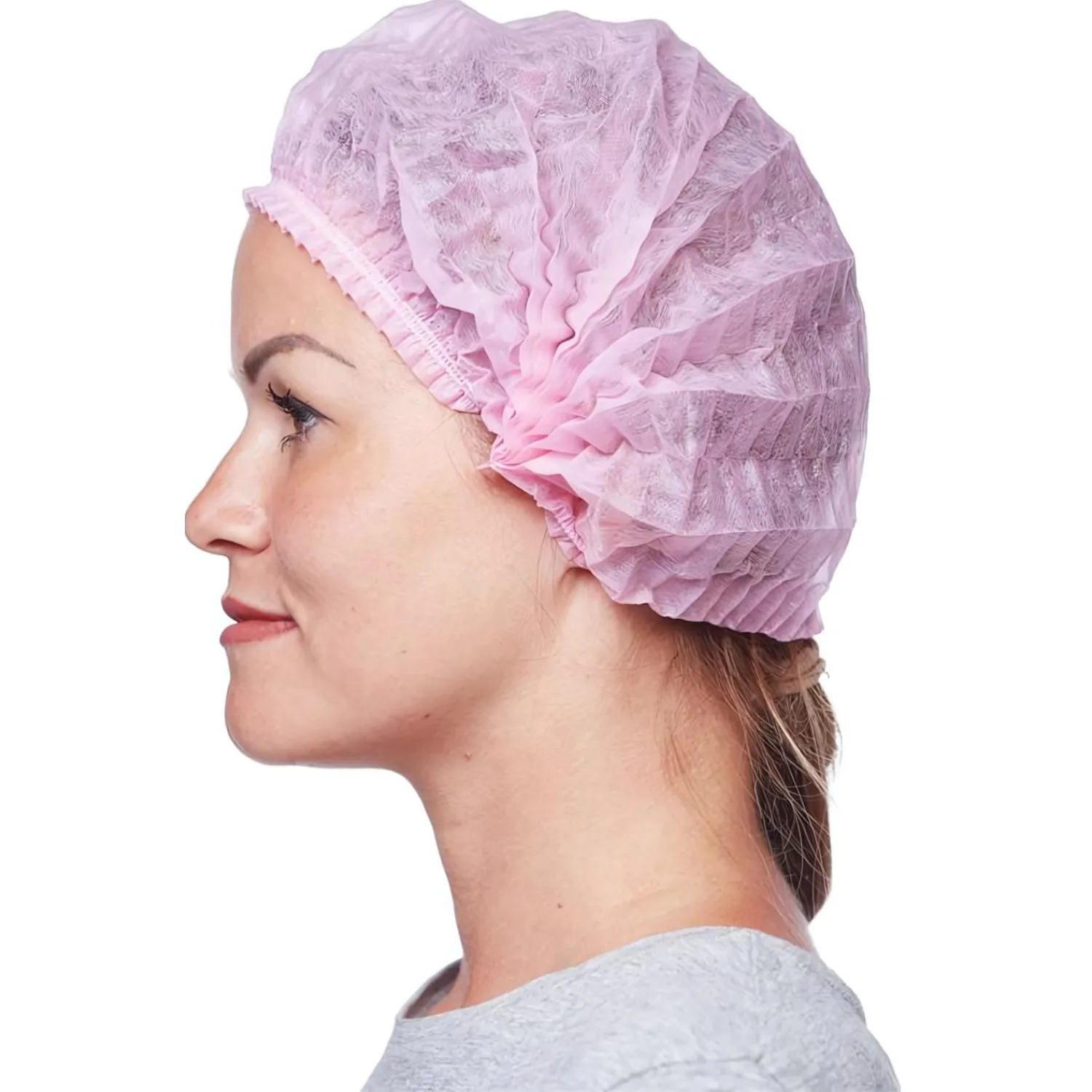 Шапочка одноразовая берет плиссе розовая (25 штук в упаковке)