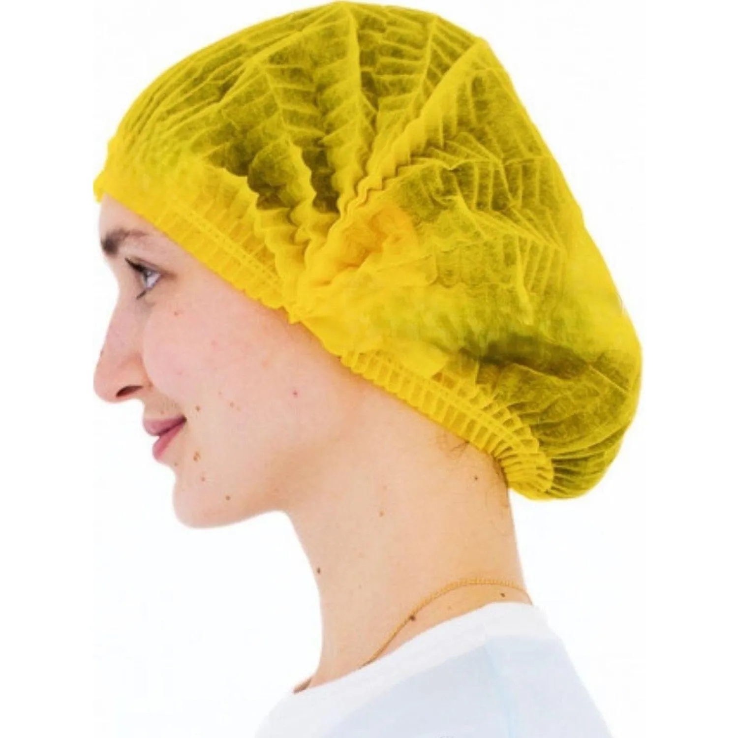 О товаре «Шапочка берет одноразовая Гекса Плиссе жёлтая с двойной резинкой (25 штук в упаковке)»