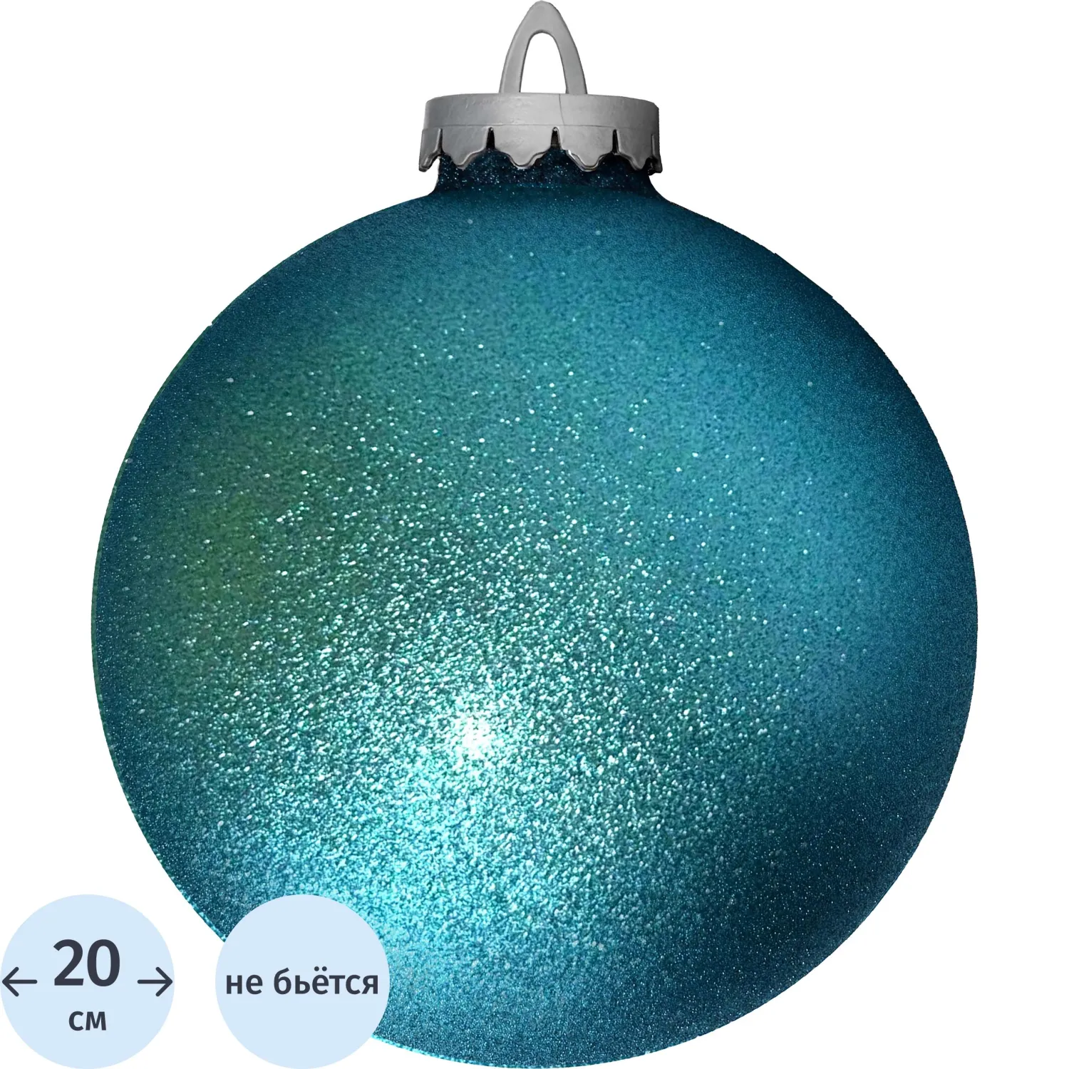 Ёлочный шар выполнен из пластика и имеет диаметр 20 см. Яркий бирюзовый шар с глиттером идеально подойдёт для оформления как уличных, так и интерьерных ёлок, а также для украшения витрин магазинов и общественных зон. Несмотря на большие размеры, этот шар обладает малым весом, что позволяет легко крепить его с помощью лент, лески или декоративных шнурков.