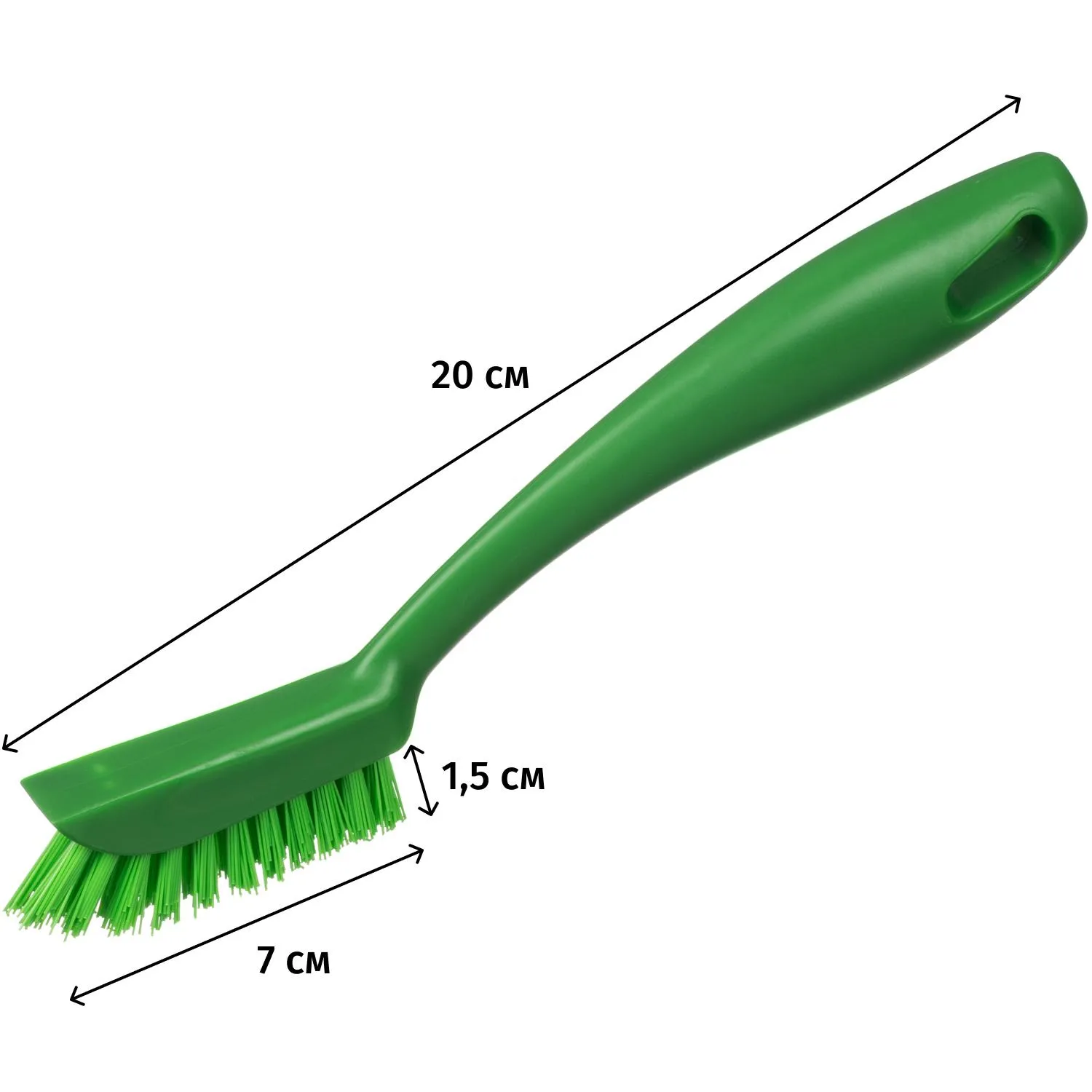 Щётка соответствует требованиям ХАССП и предназначена для профессионального использования. Зелёный цвет и компактная конструкция обеспечивают удобство в работе.