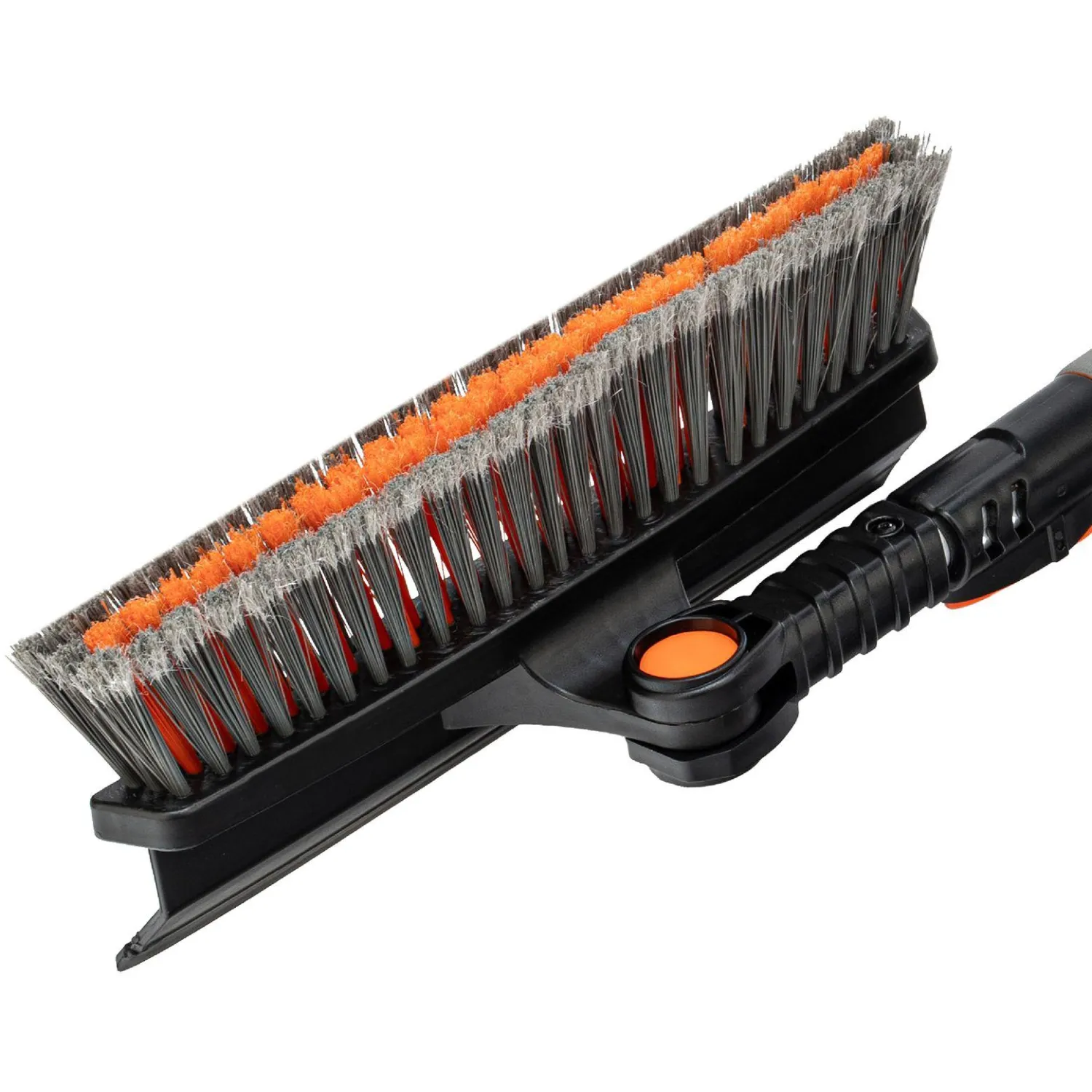 • Щётка-скребок имеет плотную щетину, распушённую на концах, поэтому эффективно убирает слой снега, не царапая поверхность кузова.