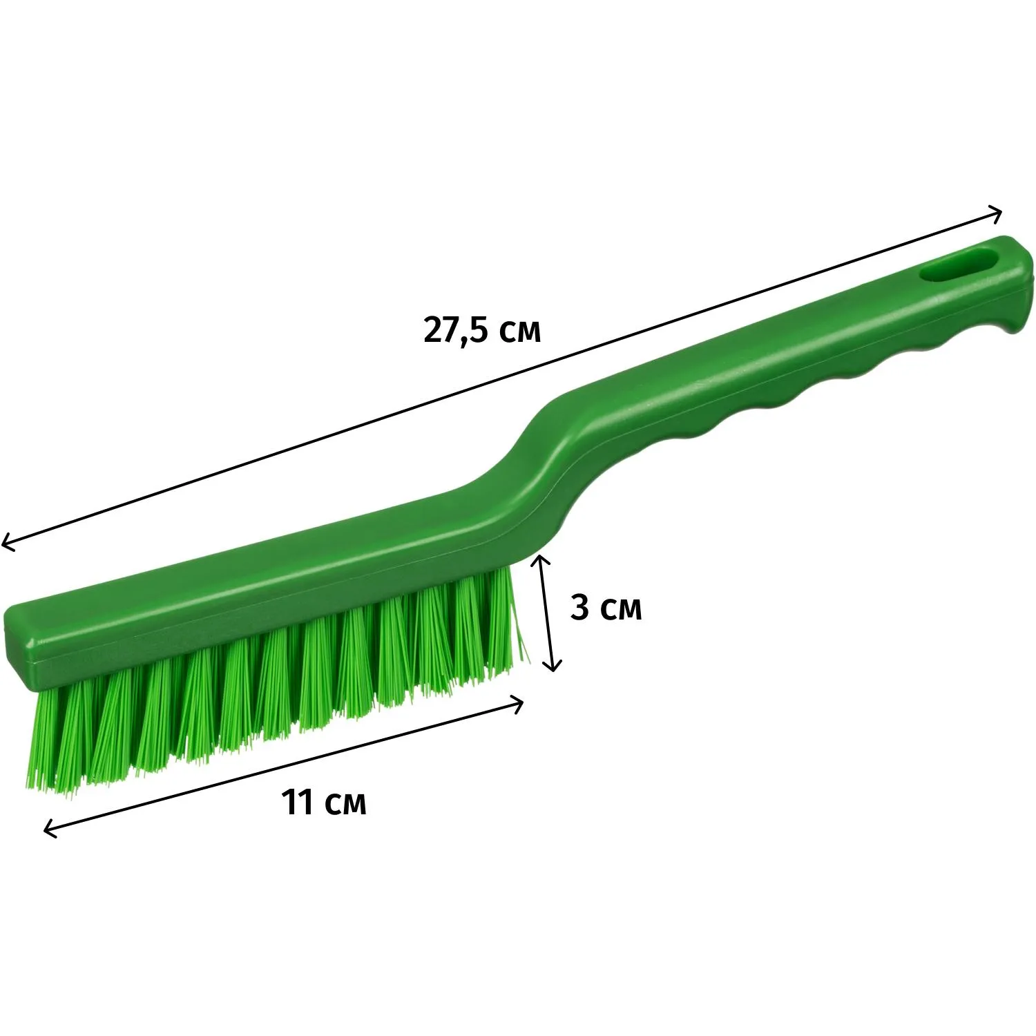 Щётка соответствует требованиям ХАССП и подходит для профессионального использования. Её зелёный цвет и практичный дизайн делают её удобной для работы в различных сферах.