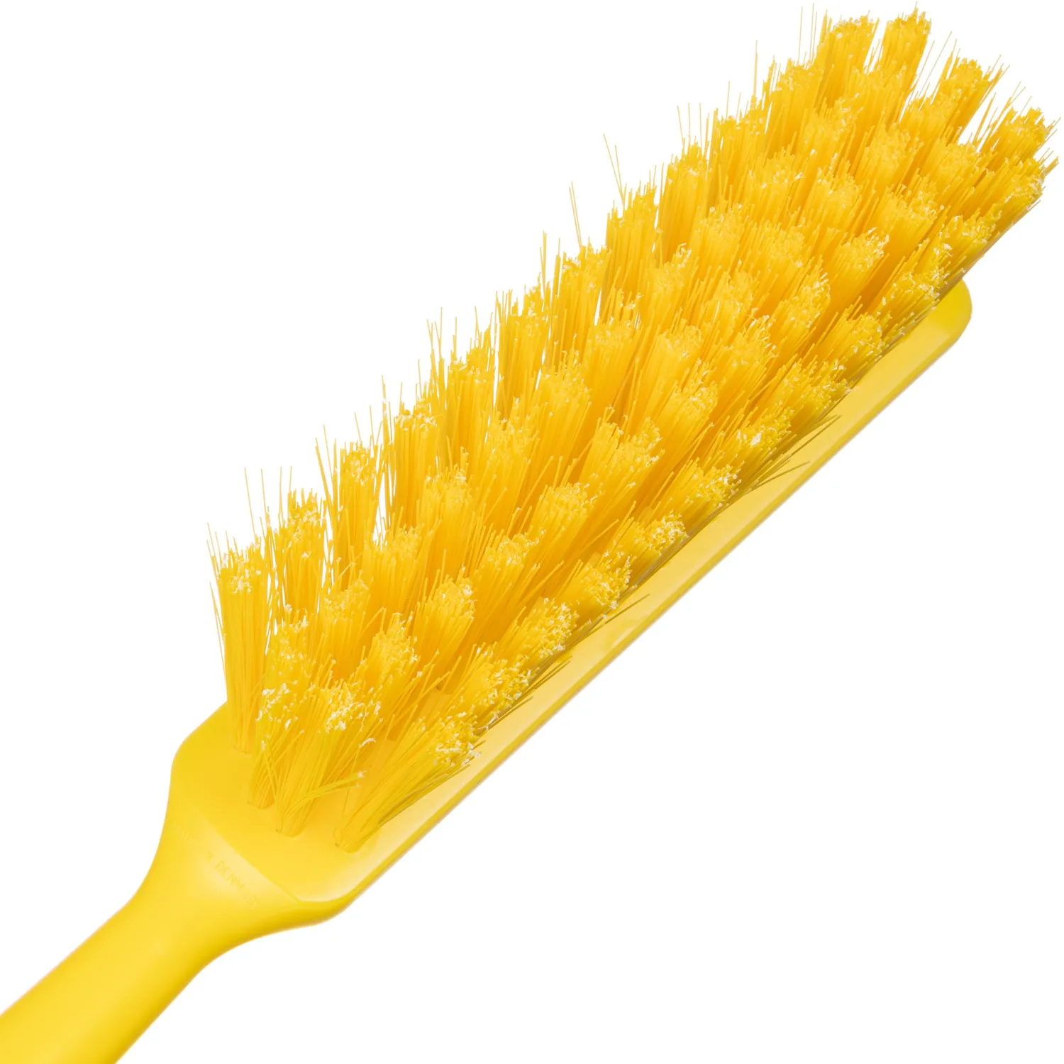 Щётка соответствует требованиям ХАССП и подходит для профессионального использования в различных отраслях. Её жёлтый цвет и функциональный дизайн делают её удобной для работы в условиях интенсивной эксплуатации.