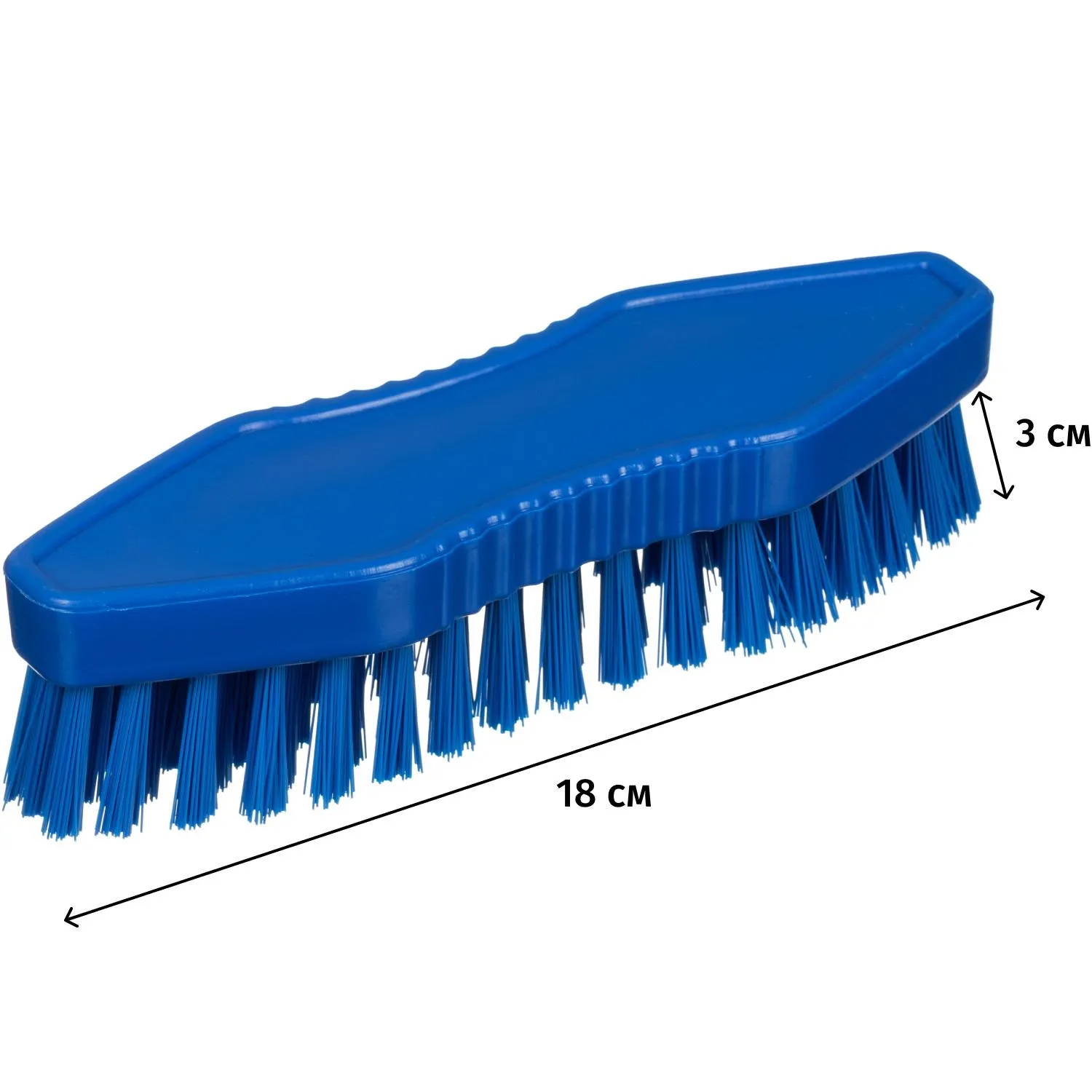Щётка соответствует требованиям ХАССП и предназначена для профессионального использования. Синий цвет и прочная конструкция обеспечивают удобство и долговечность в работе.