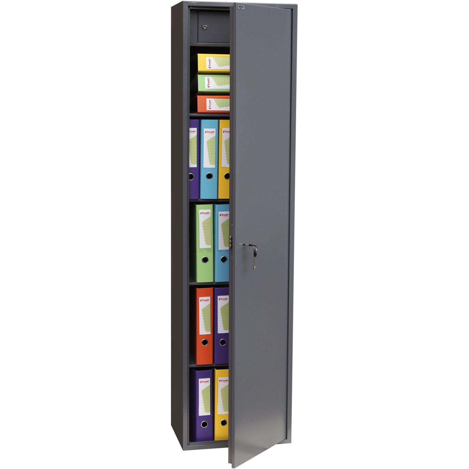 Шкаф металлический (архивный) для документов Комус Мебель TSL-180M — долговечная и практичная металлическая мебель для хранения папок, документов и любых других офисных принадлежностей. Шкаф комплектуется сувальдным ключевым замком. Особенности: цельносварной корпус, двухцветная покраска, усиленная дверь, съёмные полки, внутреннее отделение, запираемое на ключ.