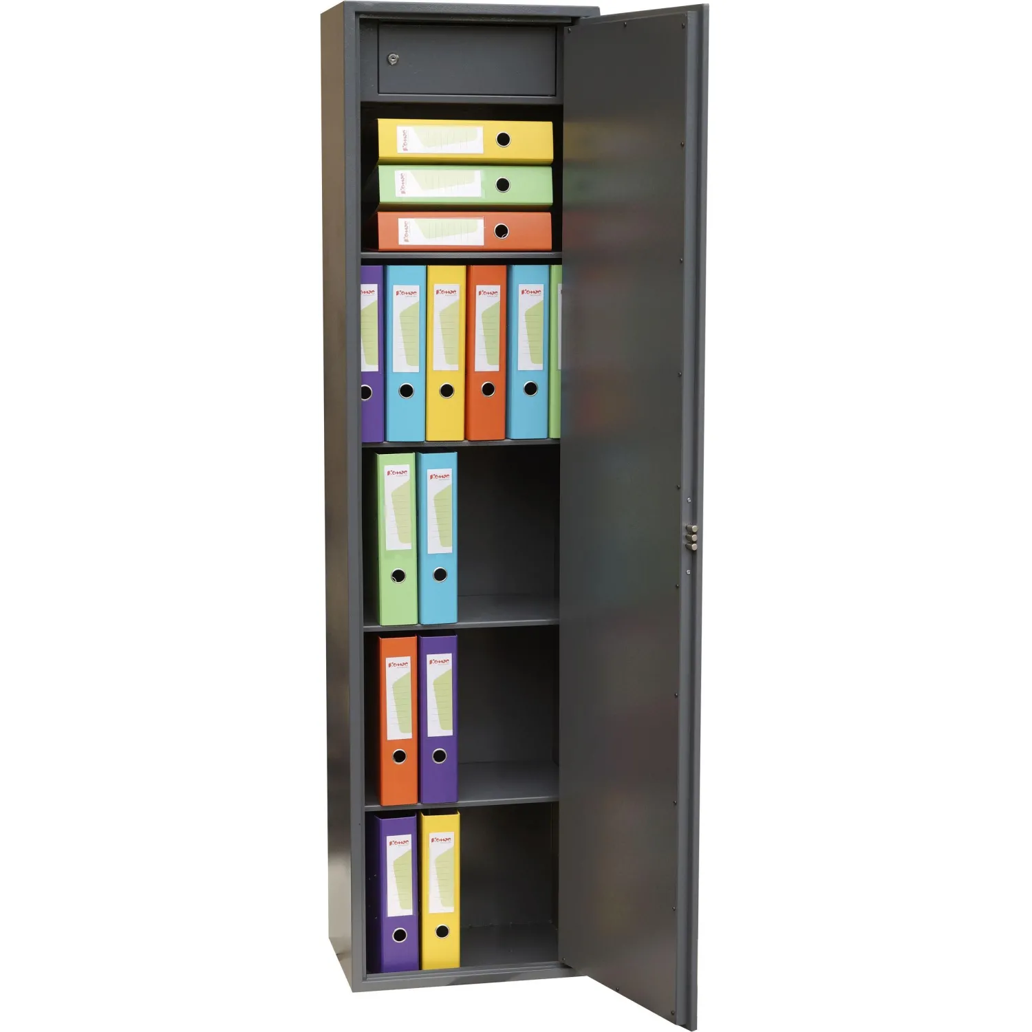 Шкаф металлический (архивный) для документов Комус Мебель TSL-180M (тёмно-серый, 460х340х1800 мм)