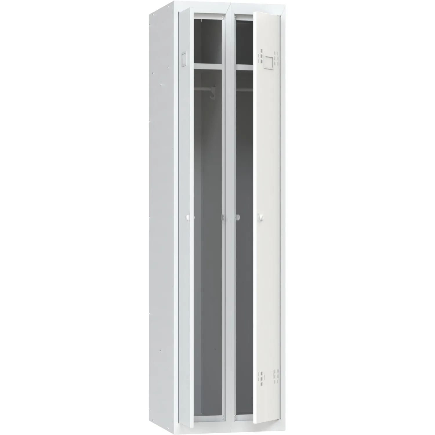 Шкаф металлический для одежды серии ШР-22 L500 предназначен для хранения одежды на предприятиях, в спортивных, образовательных, государственных учреждениях, в строительных бытовках и других местах. Шкаф имеет две секции, каждая из которых оснащается полкой для головных уборов, пластиковыми перекладиной для вешалок и двумя крючками для одежды, проушиной для навесных замков. Размер секций обеспечивает комфортное размещение верхней одежды, в том числе зимней. Конструкция предусматривает возможность установки дополнительной полки для обуви. Двери шкафов сверху и снизу имеют вентиляционные отверстия-жалюзи, оснащаются дополнительными ребрами жесткости, запираются на почтовый ключевой замок «ЦЕРЕРА» повышенной секретности 1:2000.