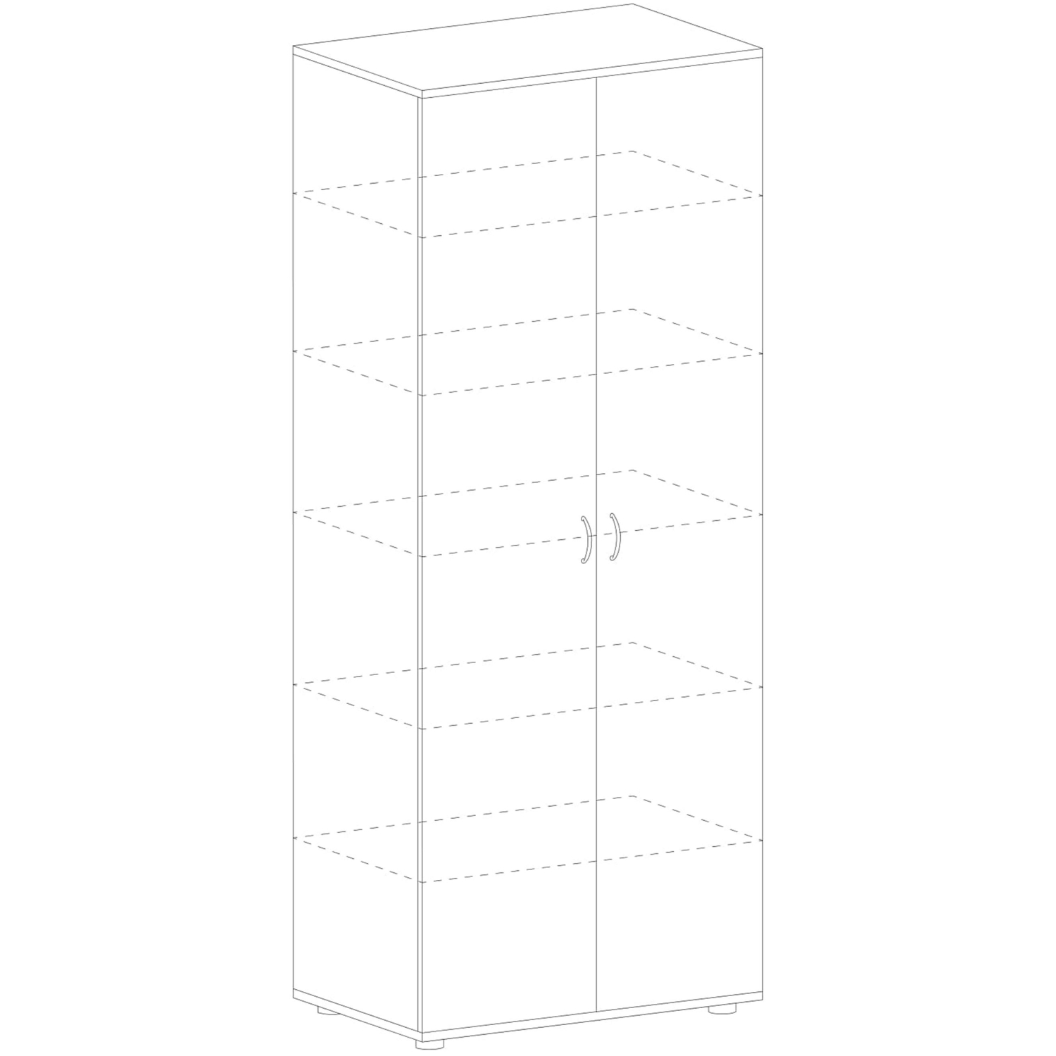 Шкаф для документов Рондо изготовлен из ЛДСП цвета береза. Оснащен пятью навесными полками, закрывается при помощи распашных дверей с накладными ручками. Кромки шкафа для документов отделаны прочным материалом ABS для защиты от повреждений.