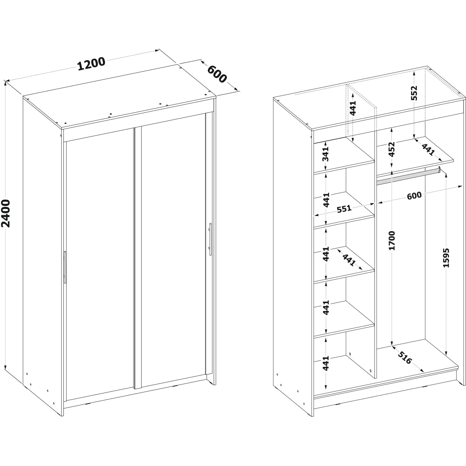 О товаре «Шкаф-купе Сокол 2-ств.ШР-126.2 1200x600x2400, венге/дуб»