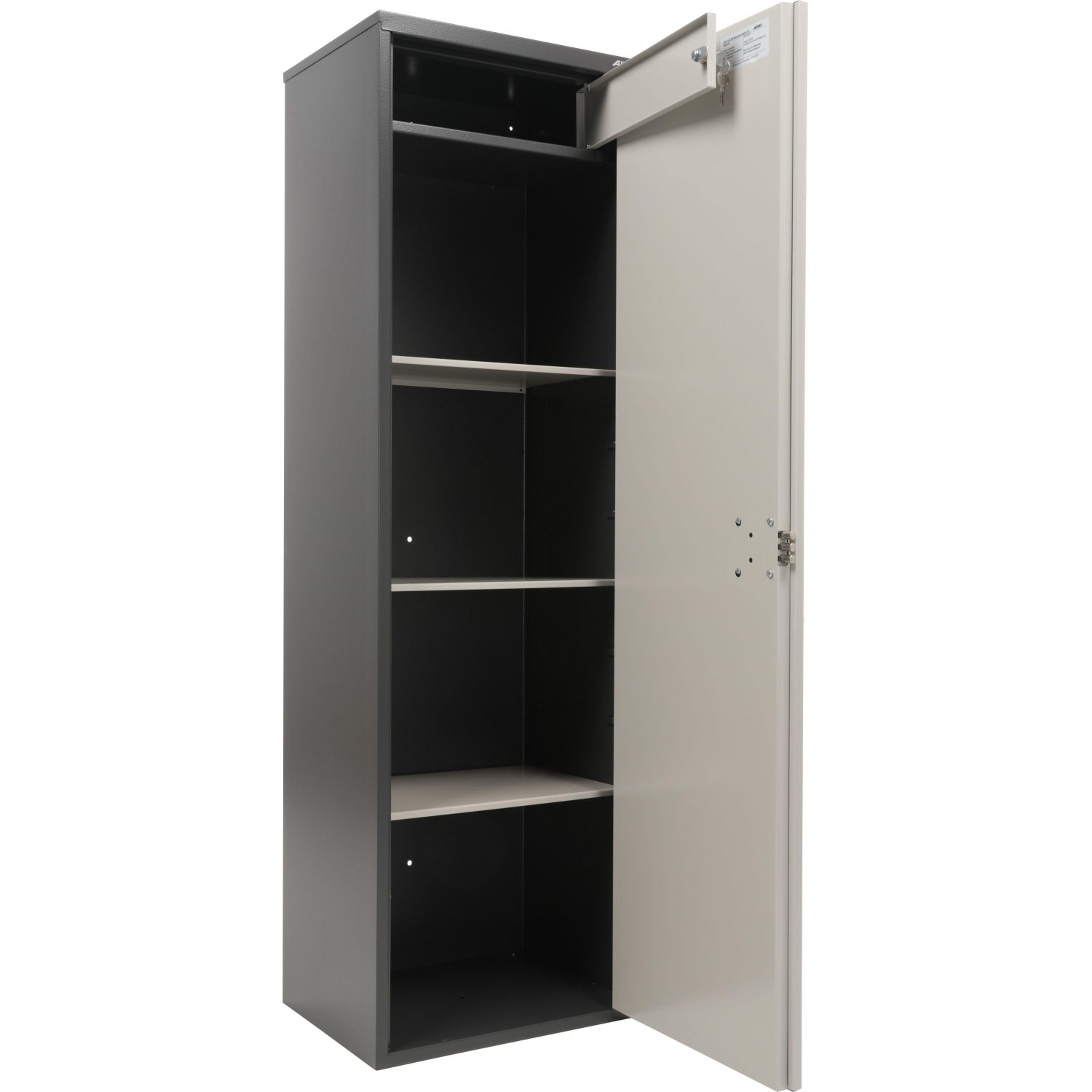 Металлический корпус с порошковым покрытием защищён от коррозии и механических повреждений. Высота шкафа позволяет эффективно использовать вертикальное пространство для хранения большого объёма архивных материалов.