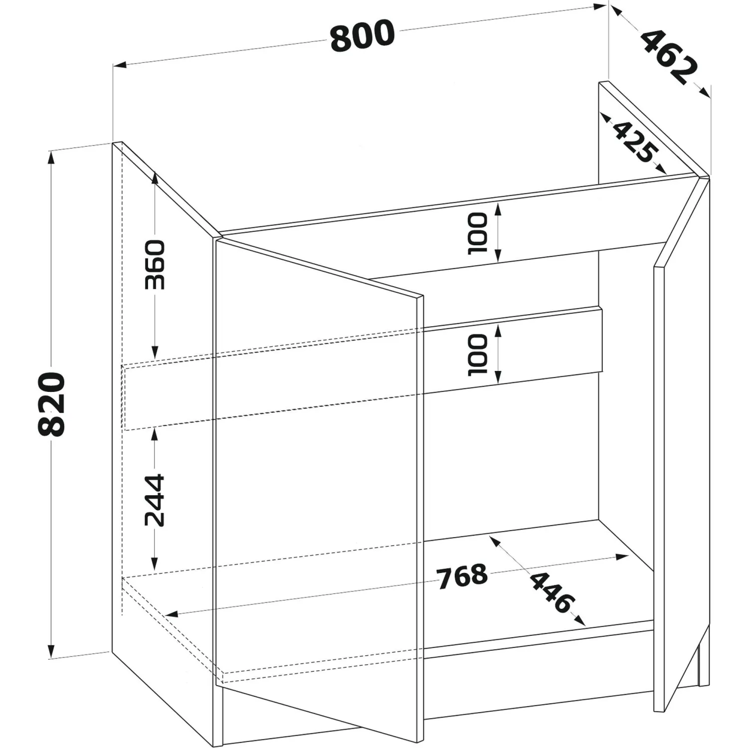 Шкаф кухонный напольный ТК-08М для мойки. Две распашные дверцы оборудованы ручками из металла. Тумба сделана из ЛДСП толщиной 16 мм, края обработаны кромкой ПВХ толщиной 0,4 мм.