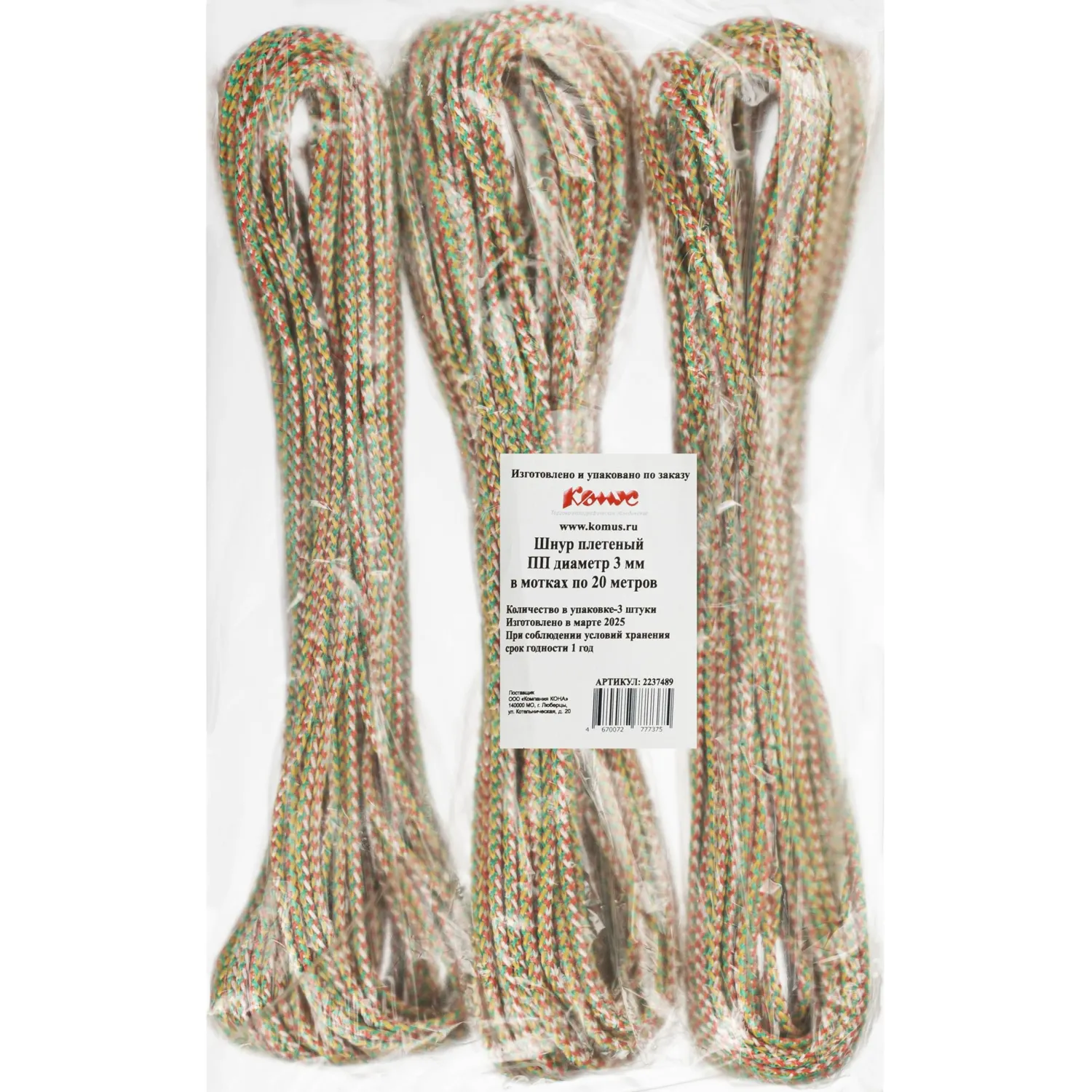 Шнур полипропиленовый плетёный (3 мм, 20 м, 3 штуки в упаковке)
