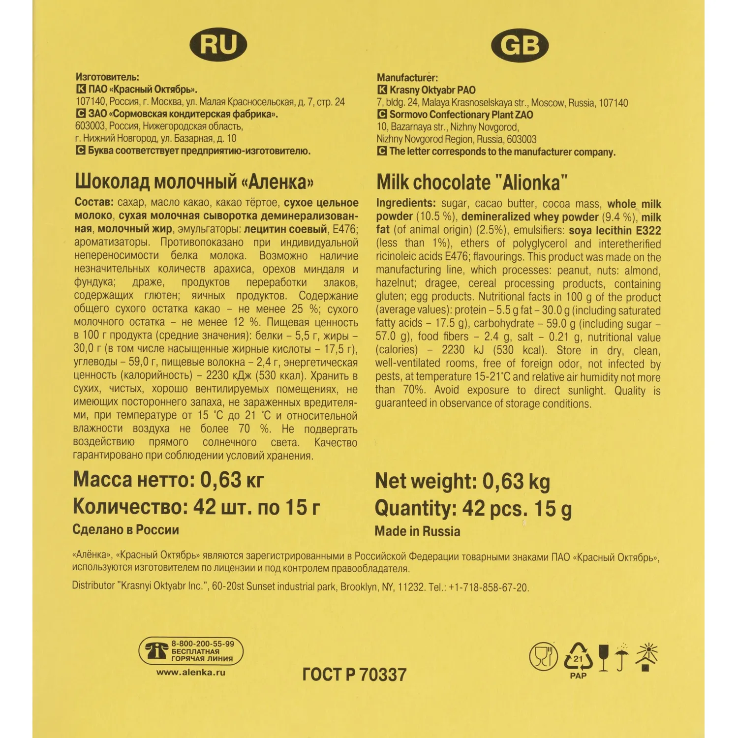 О товаре «Шоколад порционный Аленка молочный (42 штуки по 15 г)»