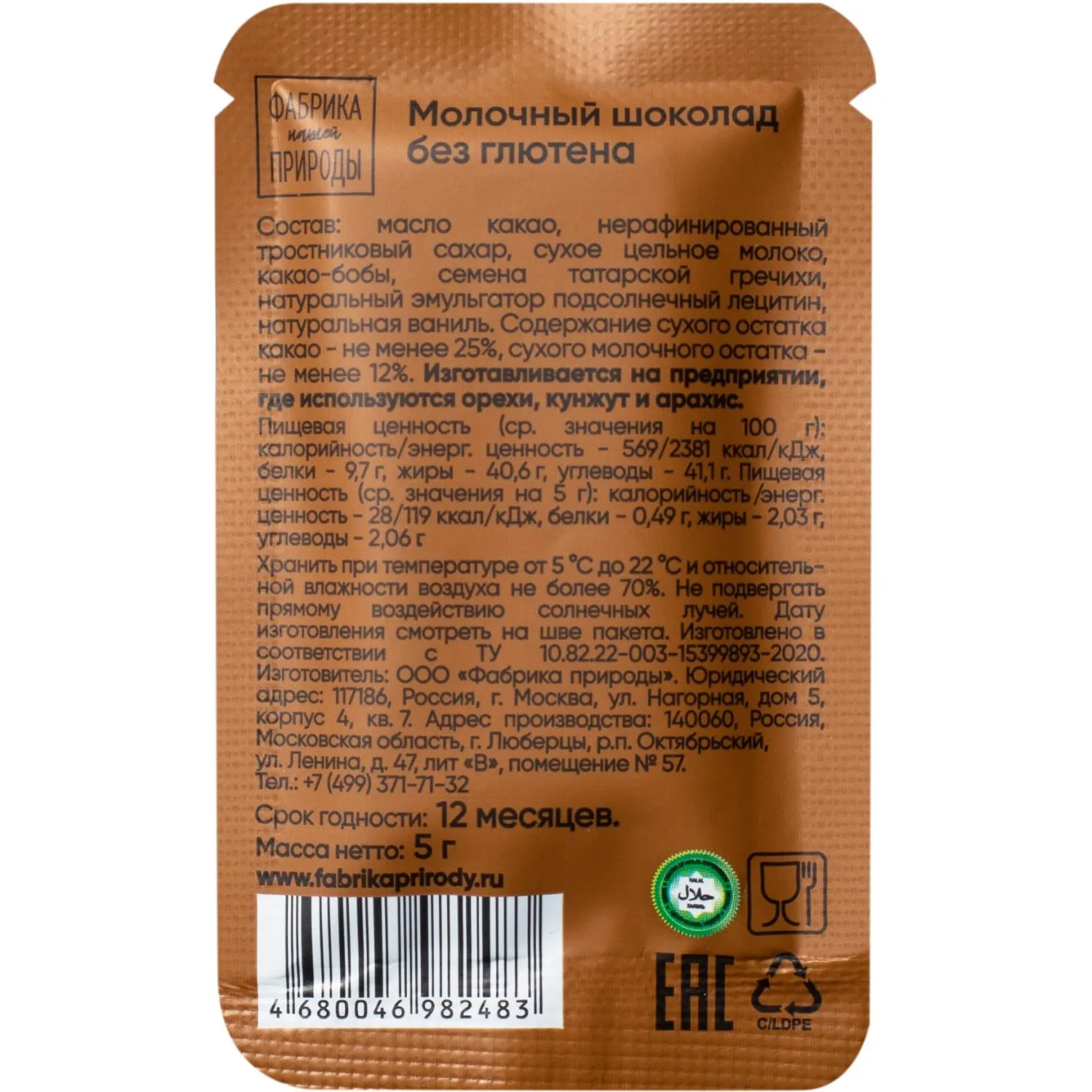 О товаре «Шоколад Фабрика нашей природы молочный, 20гx6шт/уп»