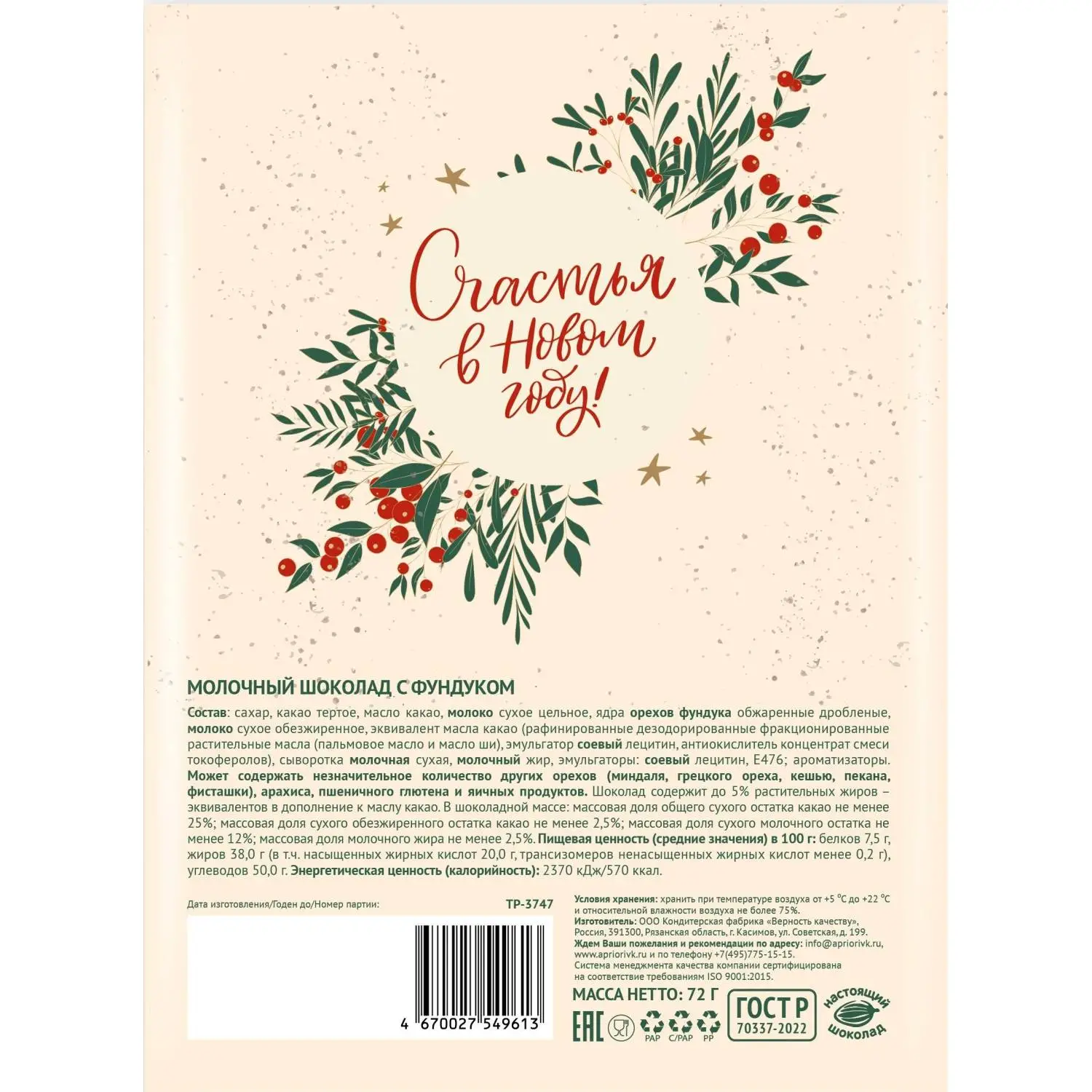 О товаре «Шоколад Открытка Рождественская история, молочный с фундуком, 72г»