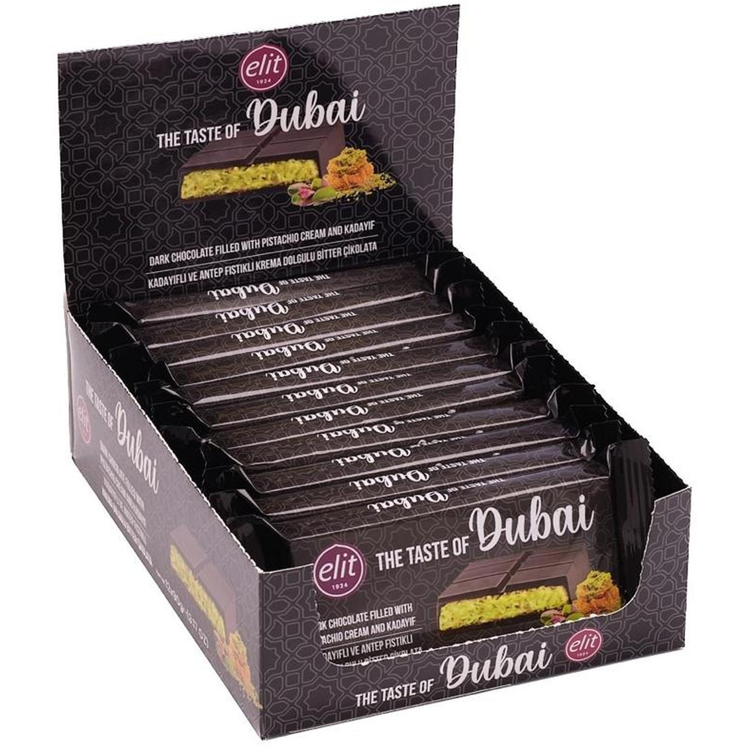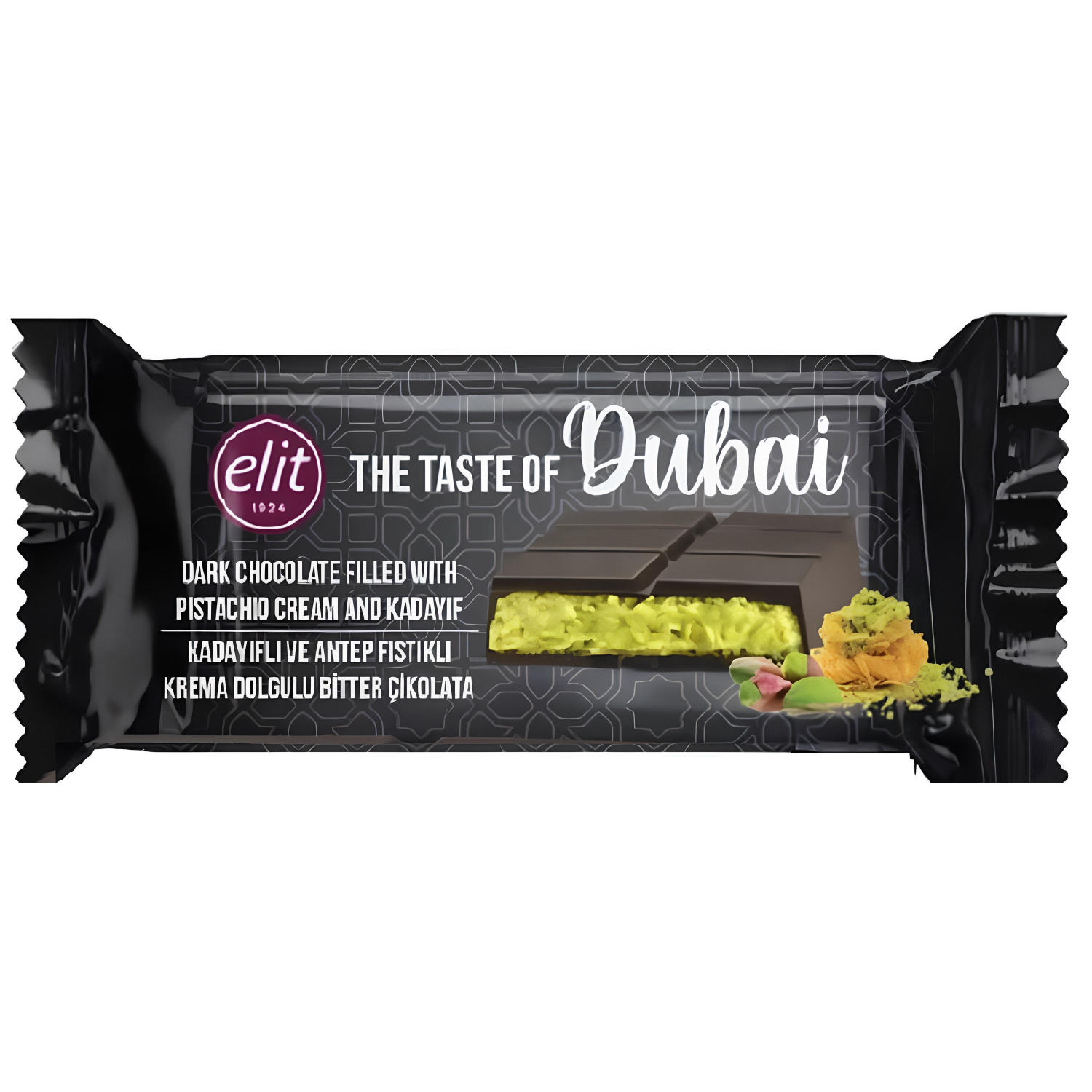 Тёмный шоколад Elit с нежнейшей фисташковой начинкой и хрустящим сладким тестом кадаиф подарит вам незабываемые впечатления от каждого кусочка.