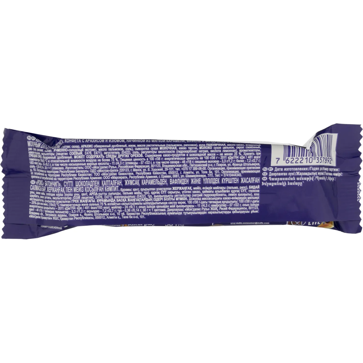«Picnic» — это микс вкусов, который позволяет наслаждаться жизнью и кайфовать в любой момент. Сочетание хрустящей вафли, арахиса, изюма и карамели дарит истинное удовольствие, а добавление мягкого и нежного шоколада делает вкус еще более незабываемым. Прогулки в парке и пикники с друзьями заиграют новыми красками с ярким вкусом шоколадного батончика «Picnic». Открой для себя новые ощущения и кайфуй с уникальным вкусом. «Picnic» — лучший выбор для всех, кто умеет получать кайф от жизни. Шоколадный батончик Picnic — это настоящий взрыв вкуса! Яркий и насыщенный вкус арахиса и изюма дополнен хрустящей вафлей и воздушным рисом, которые создают неповторимую текстуру. Нежный молочный шоколад придает еще больше вкуса, создавая идеальное сочетание с начинкой. Маленький формат шоколадки — то, что нужно, чтобы подкрепиться в пути. Состав: молочный шоколад 38% (сахар, какао-масло, молоко сухое цельное, какао тертое, сухая молочная сыворотка, молочный жир, эмульгаторы (соевый лецитин, Е476), ароматизатор ванилин), сахар, масло пальмовое, грецкий орех обжаренный дробленый (7%), воздушный рис (6,6%) (мука рисовая, сахар, ячменно-солодовый экстракт, масло пальмовое, соль), мука пшеничная, патока карамельная (кукурузная), арахис обжаренный дробленый (3,3%), сыворотка сухая молочная, какао-порошок, соль, эмульгаторы (Е471, лецитин соевый, масло соевое, ароматизатор натуральный грецкий орех и ароматизатор ванилин. Конфета содержит грецкий орех, арахис, пшеницу, глютен, молочные продукты, соевые продукты, может содержать следы других орехов. Вес: 38 г. Тип упаковки: флоу-пак. Страна производства: Россия. Срок хранения: 9 месяцев. ТУ 9123-002-45257475.