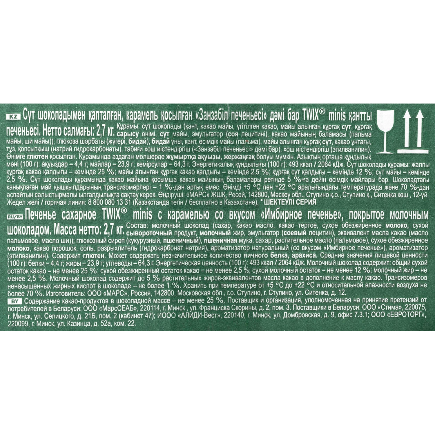 О товаре «Шоколадный батончик Twix Minis Имбирное печенье 2.7 кг»