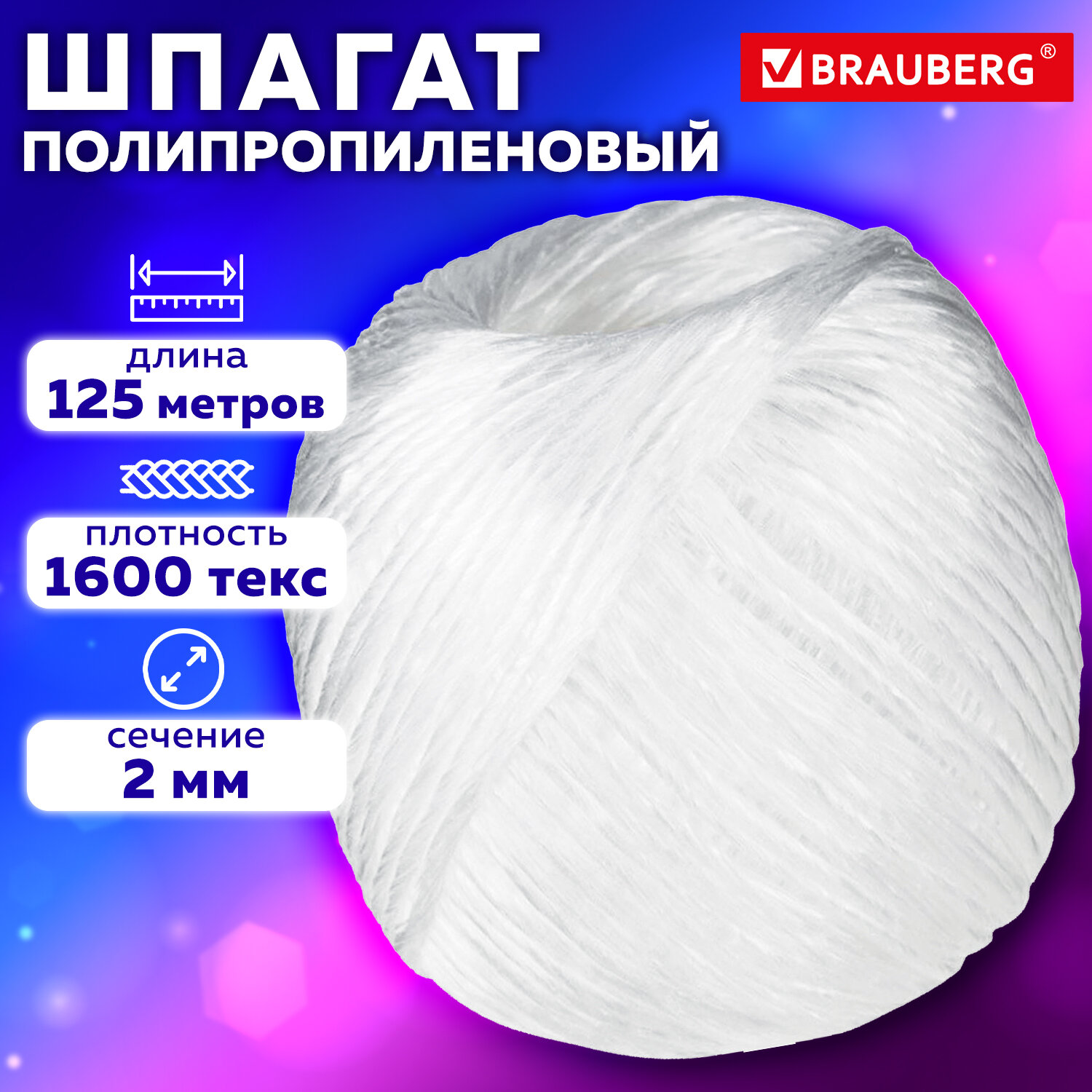 О товаре «Шпагат полипропиленовый 1600 текс (125 м, 0.2 кг)»