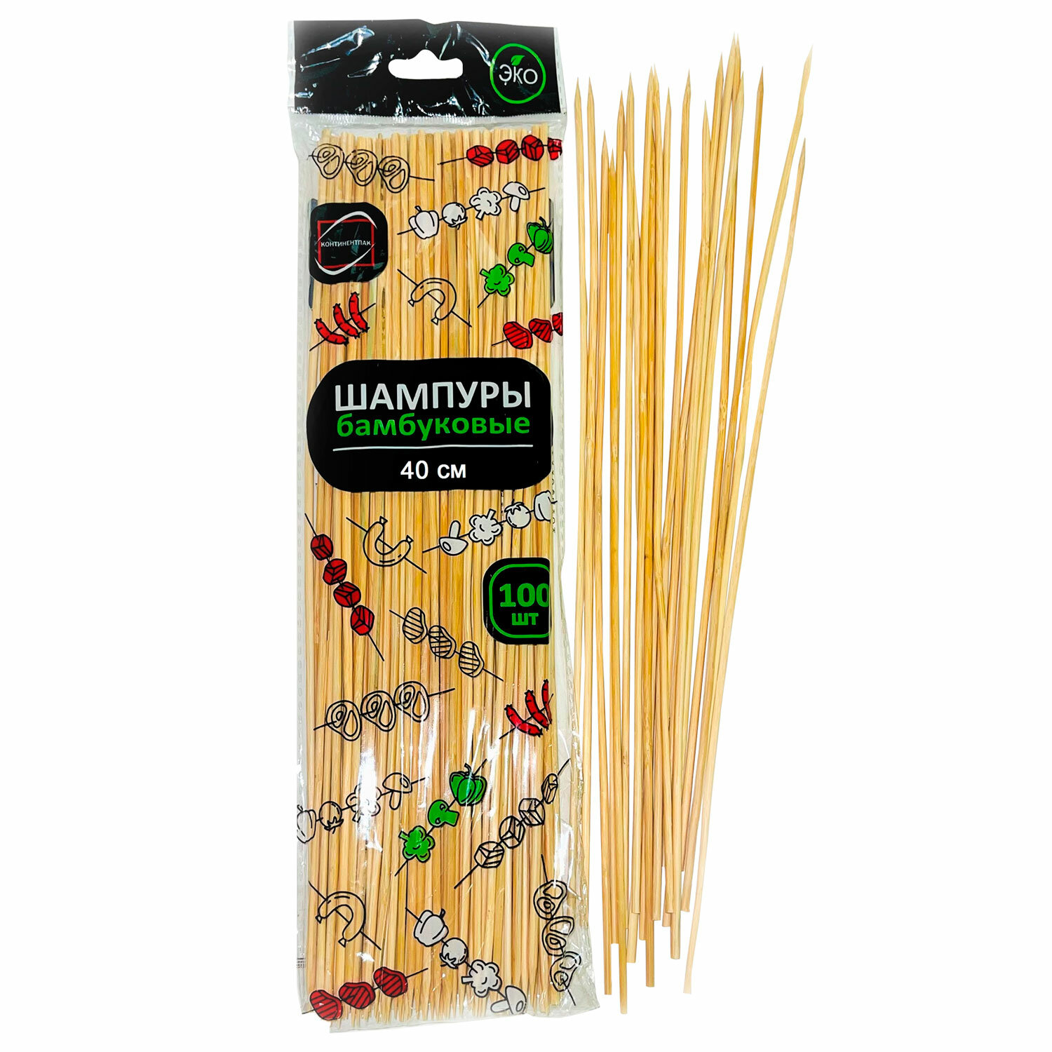 О товаре «Шпажки-шампуры для шашлыка бамбуковые 40 см, 100 штук, КП, 140639»