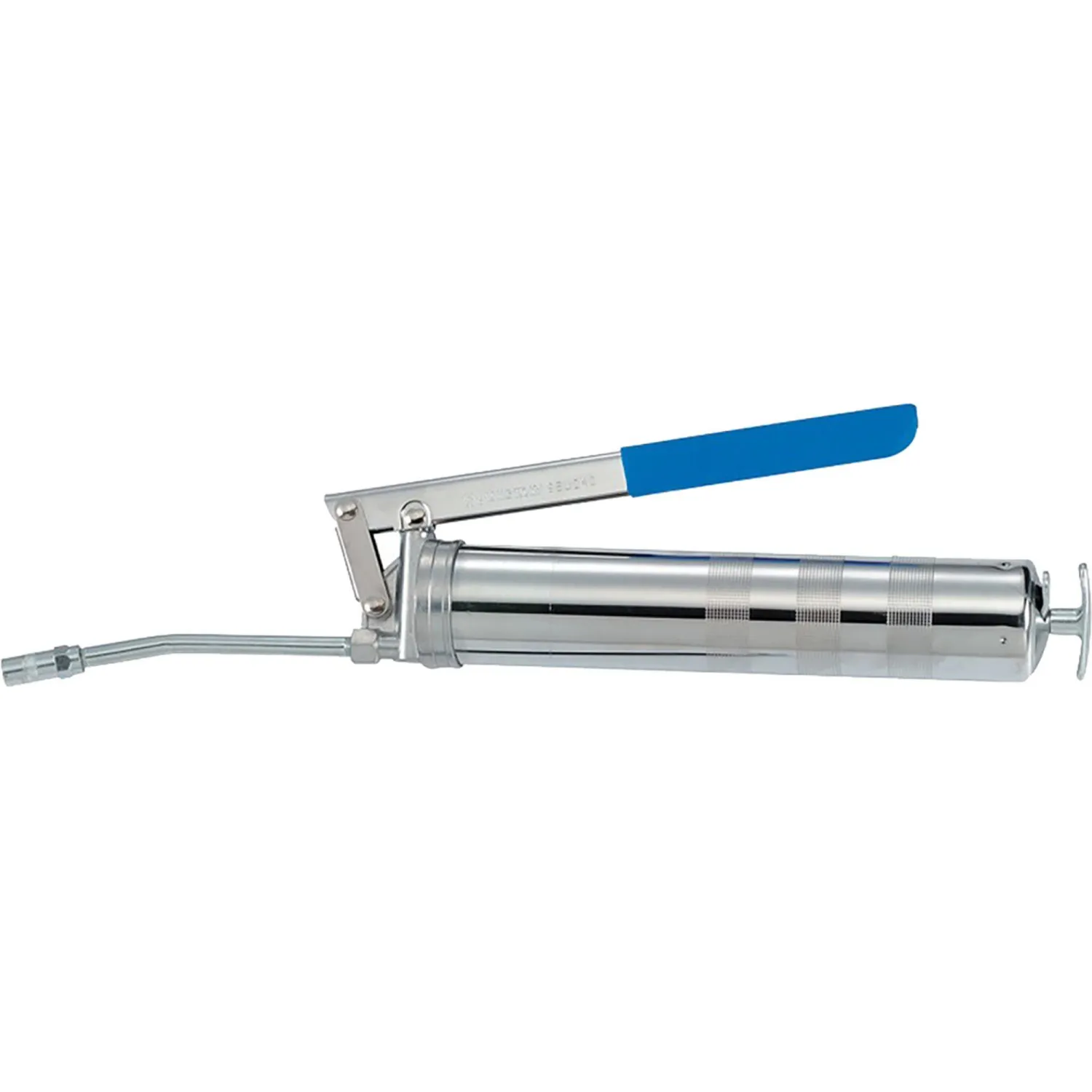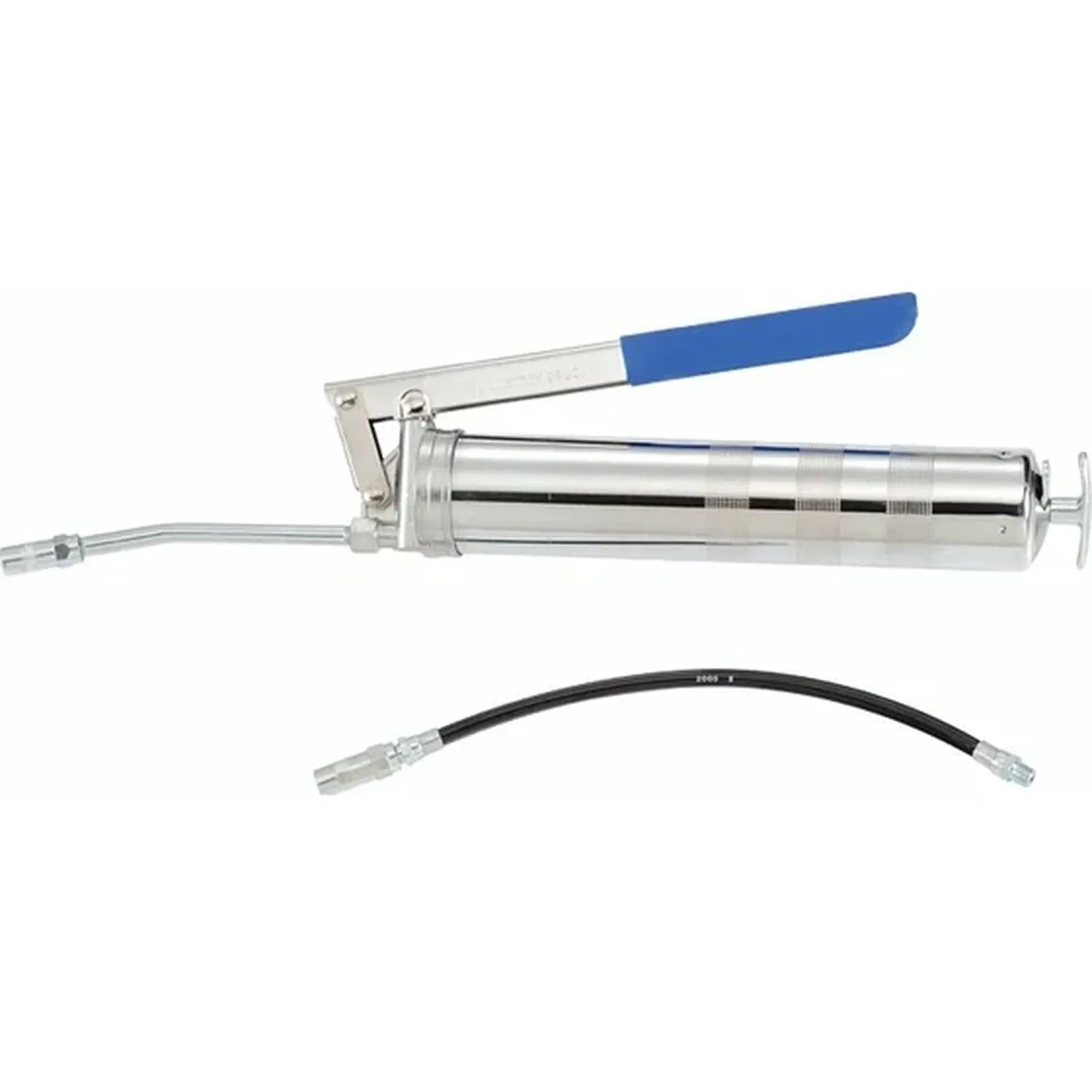 Шприц для смазки плунжерный 400 мл King Tony (9BU242T). Шприц предназначен для нагнетания густой смазки через пресс-масленки. Применяется в автомобильной, сельскохозяйственной и других видах промышленности для смазывания узлов и агрегатов транспортных средств и техники. Смазка производится посредством нагнетания плунжером небольшого количества смазки. Смазка подается из основной емкости шприца, предварительно заправленным смазкой ручным способом либо специальным картриджем. Работа производится двумя руками — держа одной рукой корпус шприца, второй рукой, нажимая на рычаг, нагнетаете смазку.