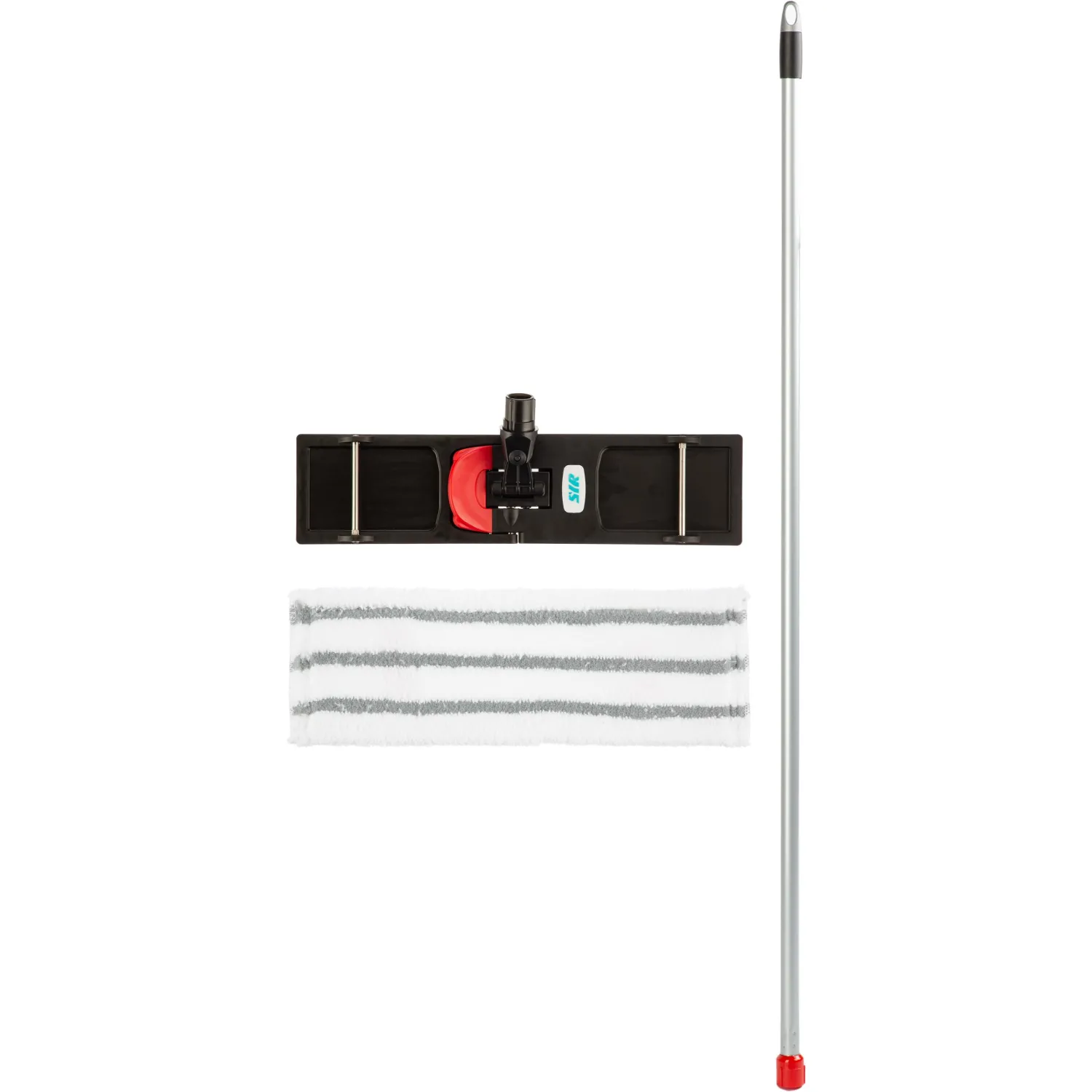Набор швабры SYR состоит из плоского МОПа Syr из 100% микрофибры с жёстким абразивом, держателя плоского МОПа (флаундер) и облегчённой ручки 134 см с креплением Interchange. Набор полностью исключает контакт грязного МОПа с руками при использовании ведра Syr.