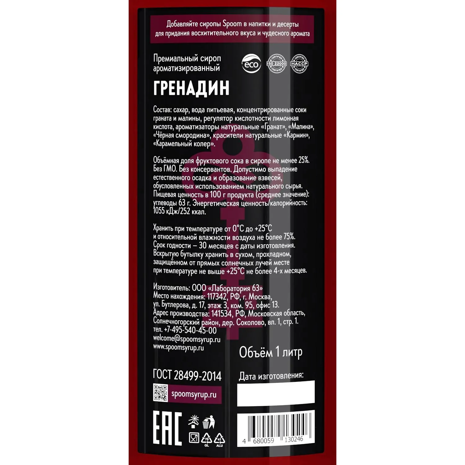 О товаре «Сироп Spoom Гренадин 1 л»