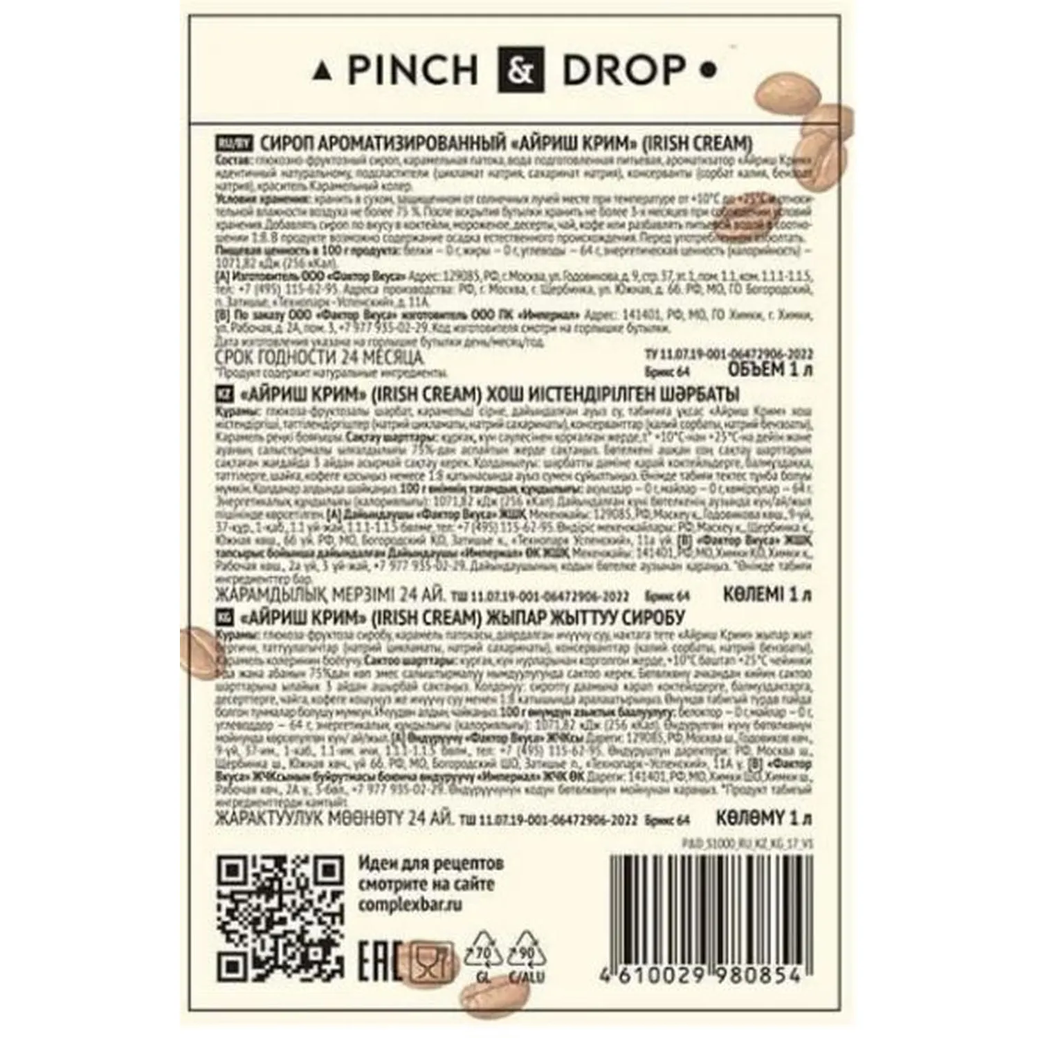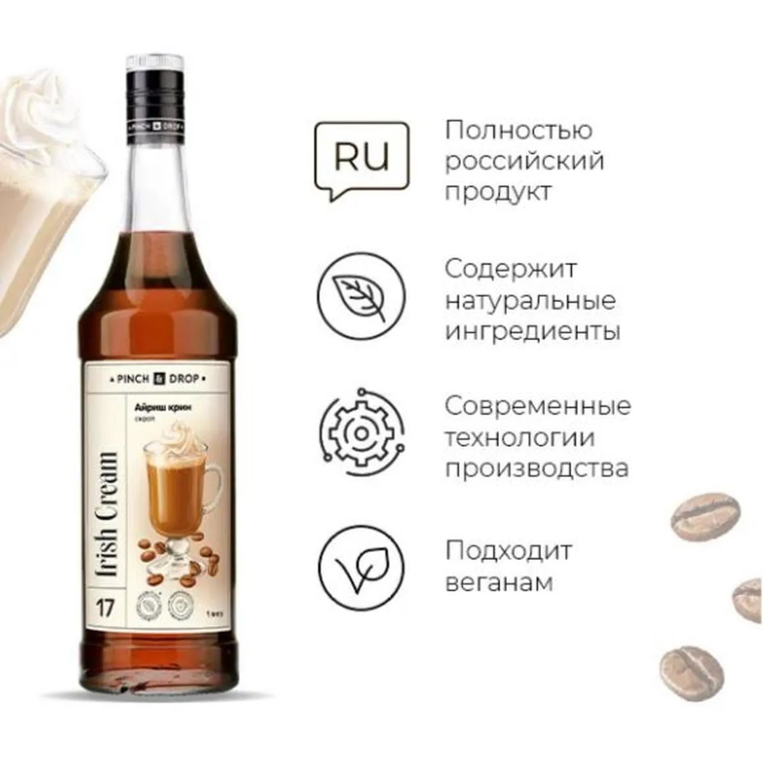 О товаре «Сироп Pinch&Drop Айриш Крим, стекло, 1л»