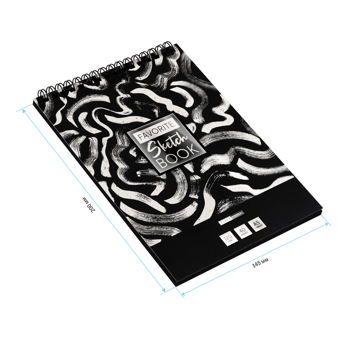 Скетчбук 40л., А5 ArtSpace "Black line. Strokes", на гребне, черный блок, 120г/м2
