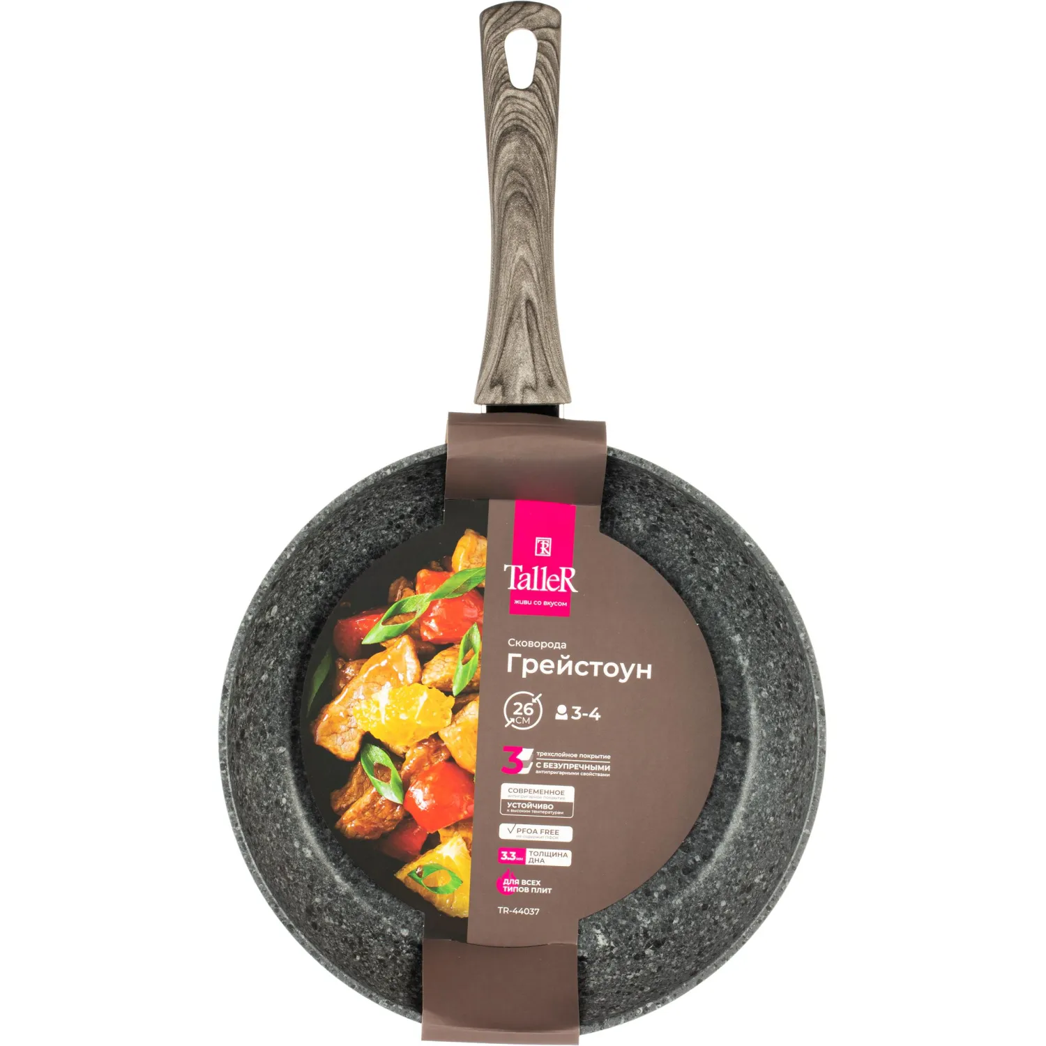 Сковорода универсальная TalleR сделана из кованого алюминия с антипригарным покрытием.