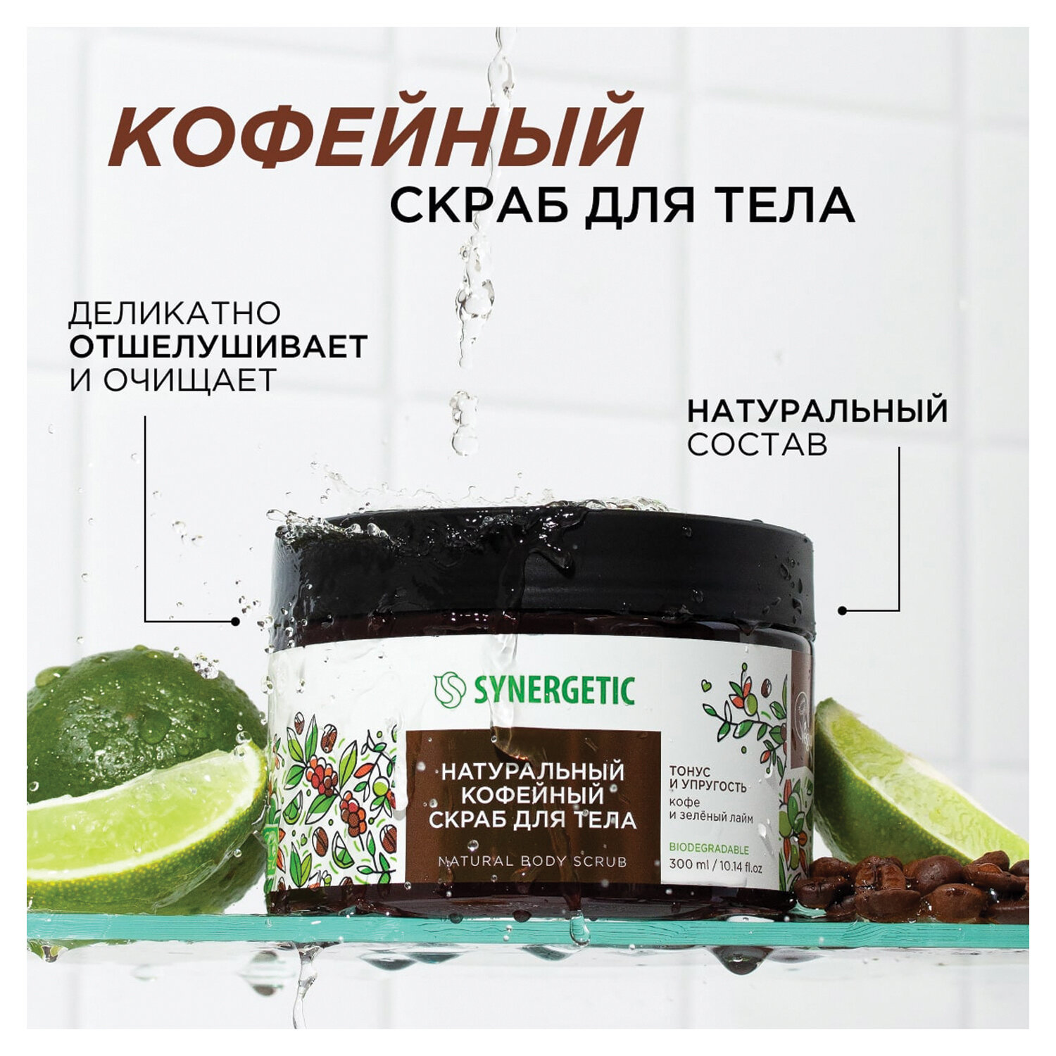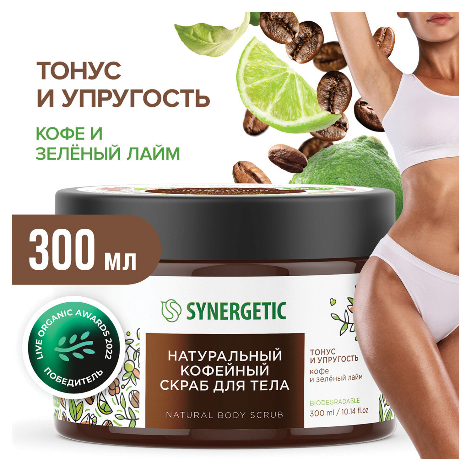 О товаре «Скраб для тела Synergetic Кофе и зелёный лайм 300 мл»
