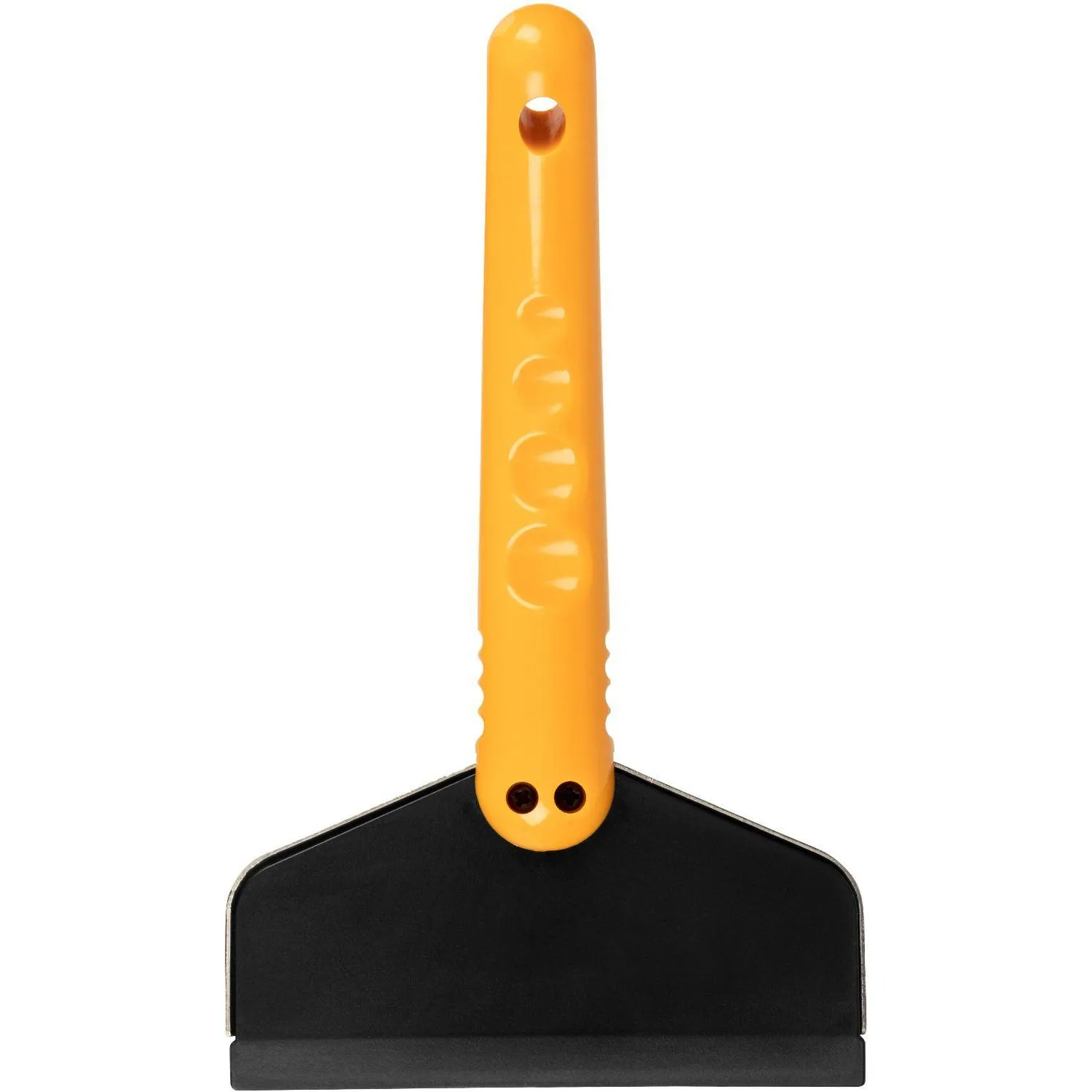 Усиленный скребок для удаления льда Denzel 55329 применяется для очищения зеркал и стёкол автомобиля от налипшего и примёрзшего снега. За счёт небольшого размера 180×110 мм скребок удобно хранить в салоне автомобиля.