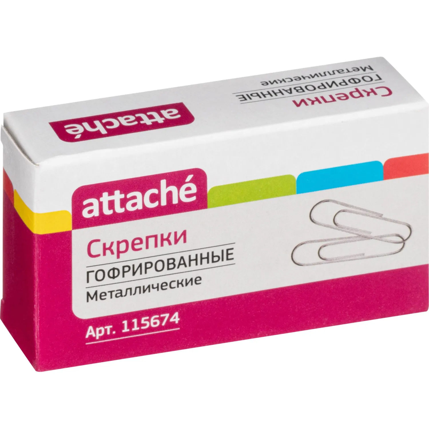 Скрепки Attache незаменимы при работе в офисе или дома, когда нужно соединить несколько бумаг, например, все листы договора или другие важные документы. Изготовлены из металла без покрытия. Имеют гофрированную поверхность и удобную закругленную форму. Не окисляются и не портят бумагу. В картонной коробочке.
