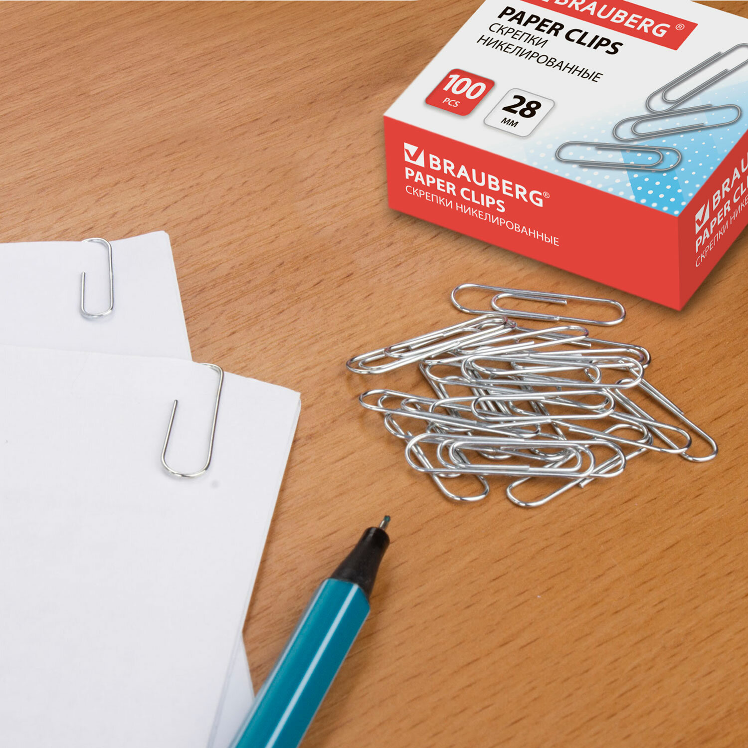 Скрепки BRAUBERG, 28 мм, никелированные, 100 шт., в картонной коробке, Россия, 221523