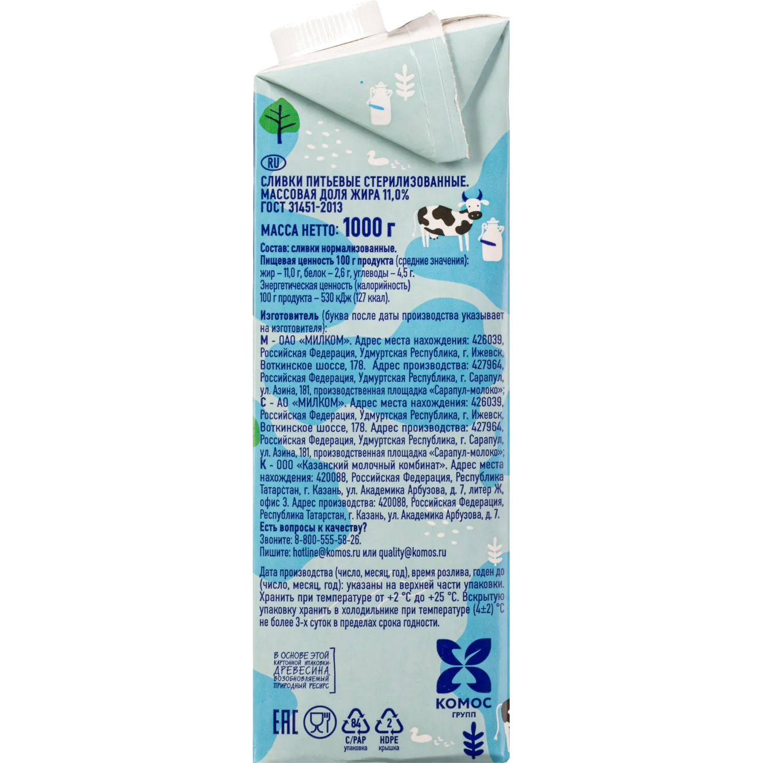 О товаре «Сливки Молочная Речка стерилизованные 11% 1000 г»