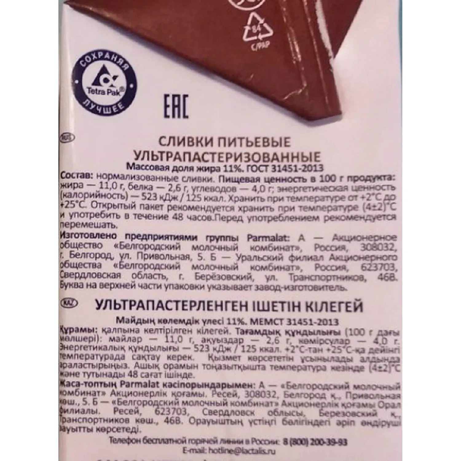 О товаре «Сливки Parmalat Chef питьевые 11% 1кг»