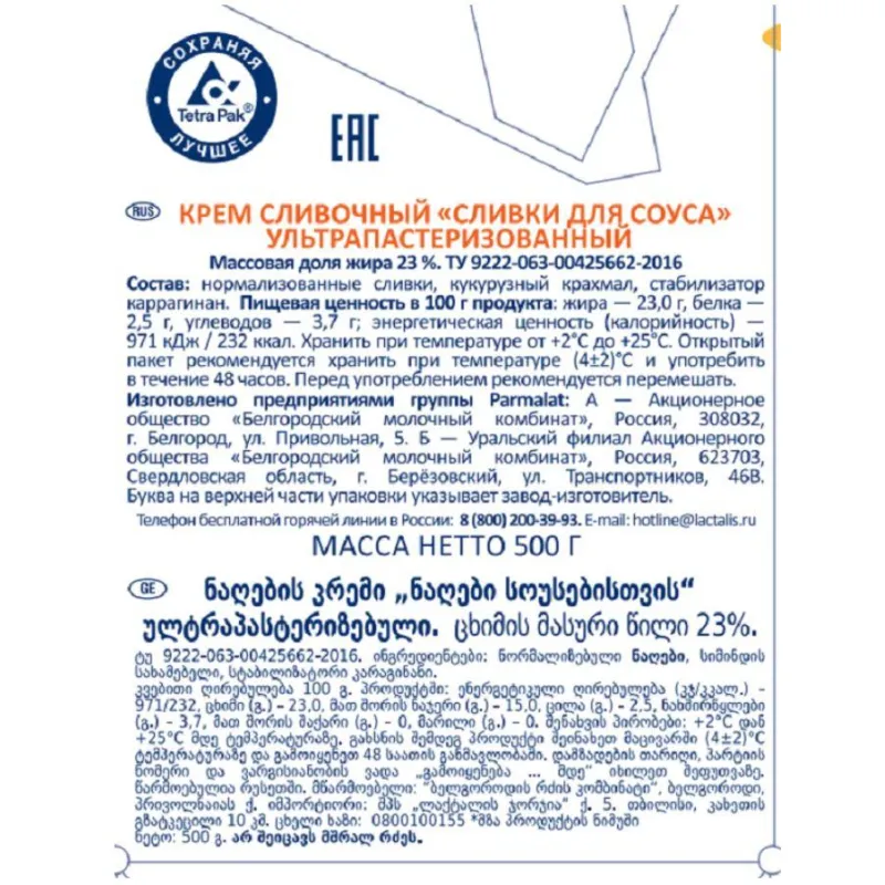 О товаре «Сливки Parmalat Edge ультрапастеризованные 23% 0,5л»