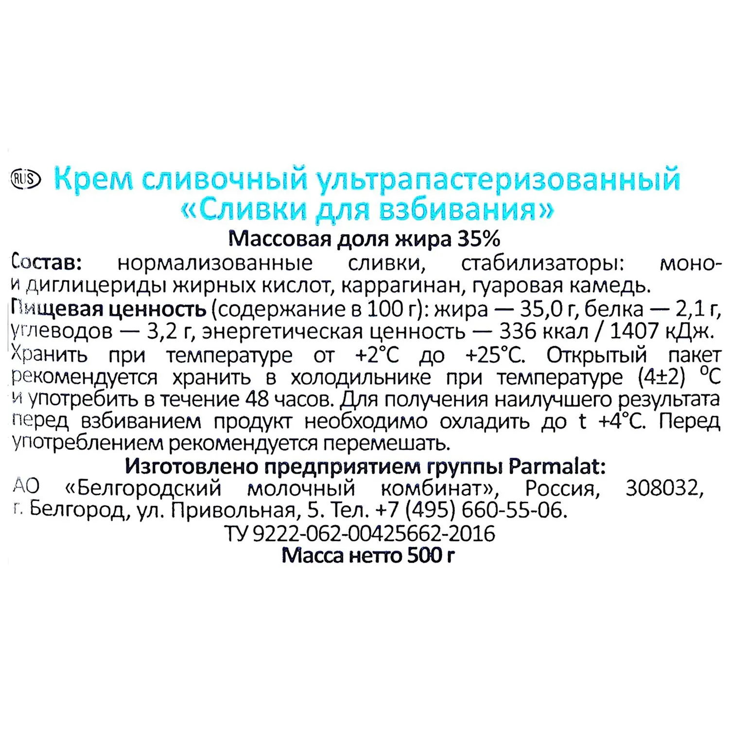 О товаре «Сливки Parmalat стерилизованные 35% 500 г»