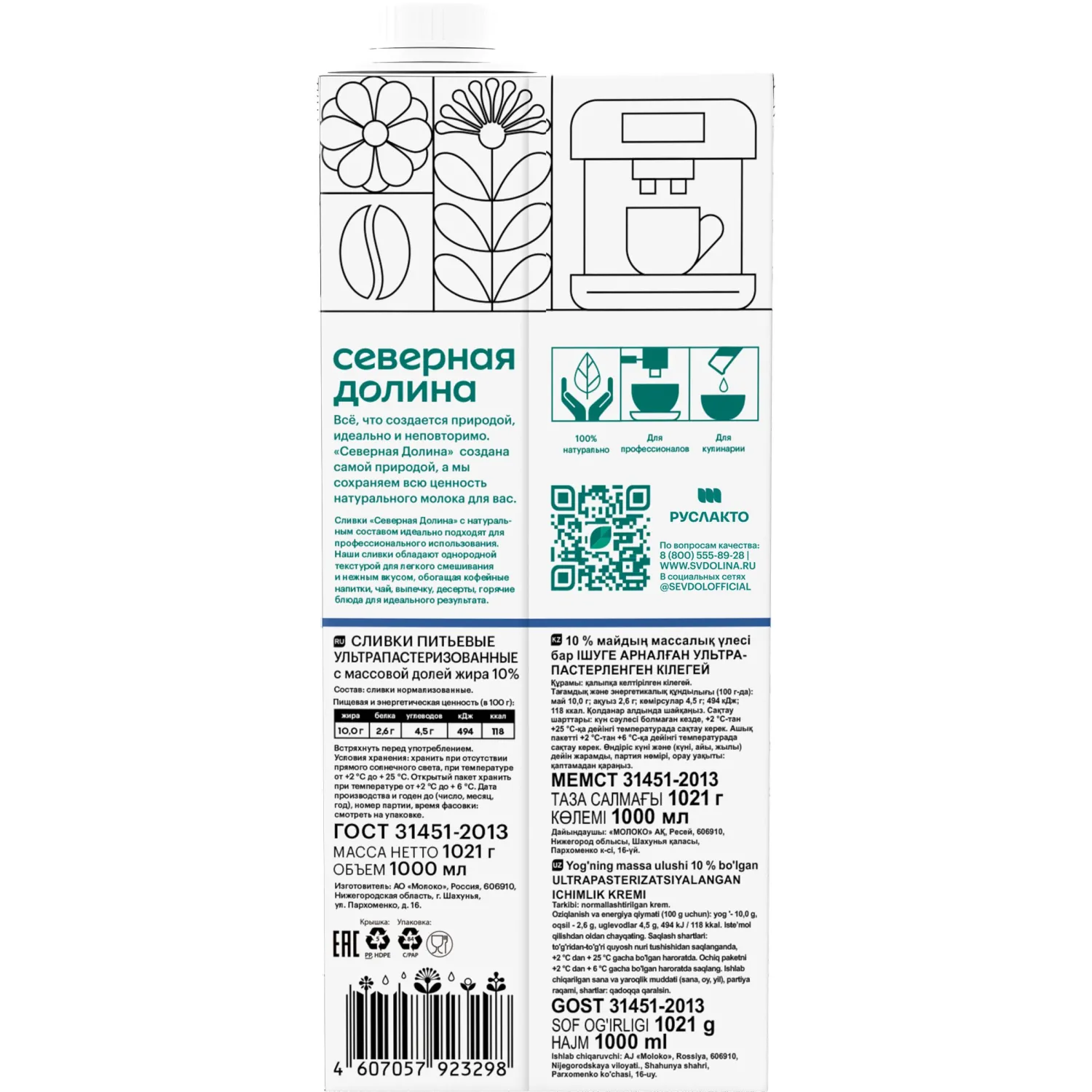 О товаре «Сливки Северная Долина (Prof) ультрапастериз 10% 1л»