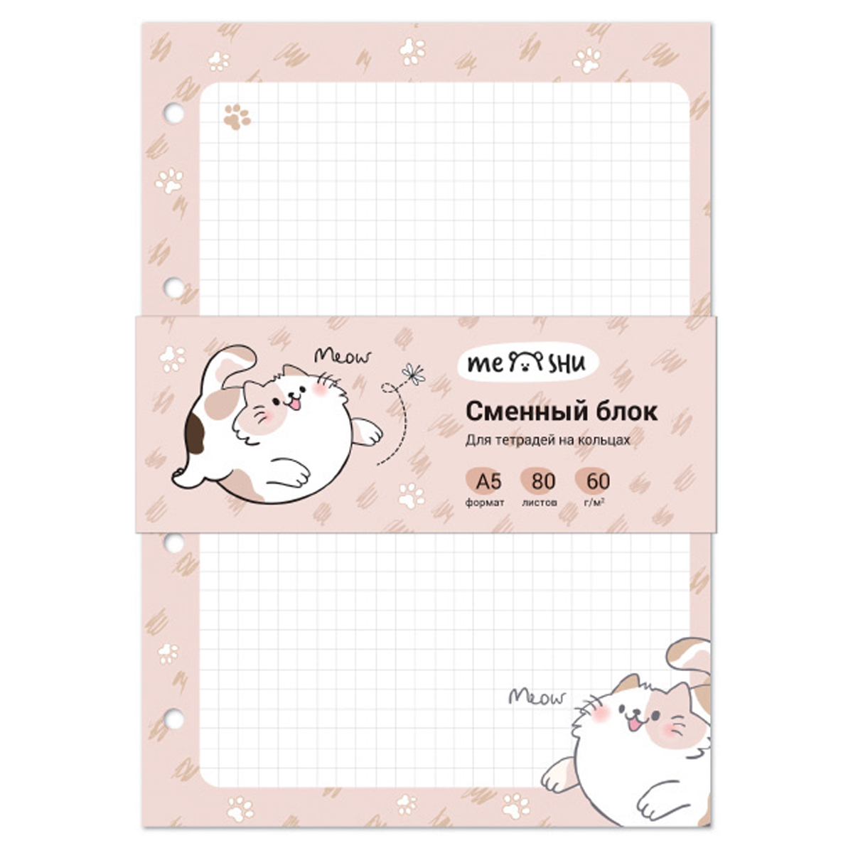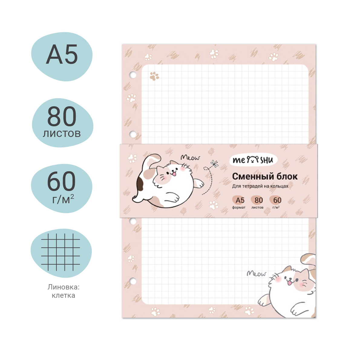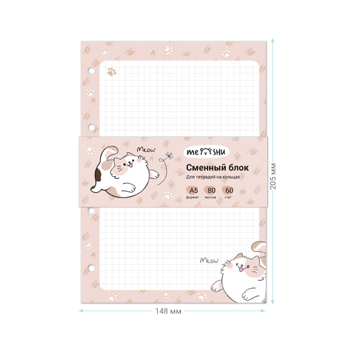 О товаре «Сменный блок 80л., А5, MESHU "Нappy cat", пленка т/у, в клетку»