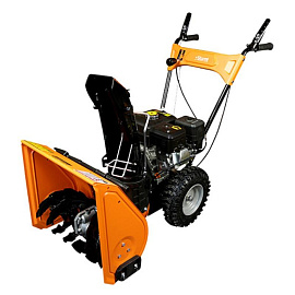 Снегоотбрасыватель оснащён надёжным зимним двигателем марки Zongshen с защитой от низкого уровня масла. Большой ковш 53×51 см с полозьями скольжения обеспечивает внушительную ширину прохода и позволяет убирать сугробы до полуметра высотой. Агрессивные шнеки диаметром 250 мм легко справляются со слежавшимся снегом и настом. Набор скоростей: 4 вперёд и 1 назад — для настройки оптимальной скорости движения снегоуборщика. Большие пневматические колёса с зимним протектором для уверенного движения. Размер колёс: 33×13 см. Марка бензина: АИ-92.