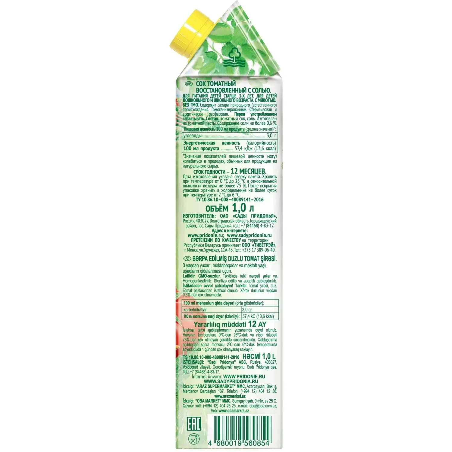 Состав: томатный сок, поваренная соль. Содержание поваренной соли не более 0,4%.